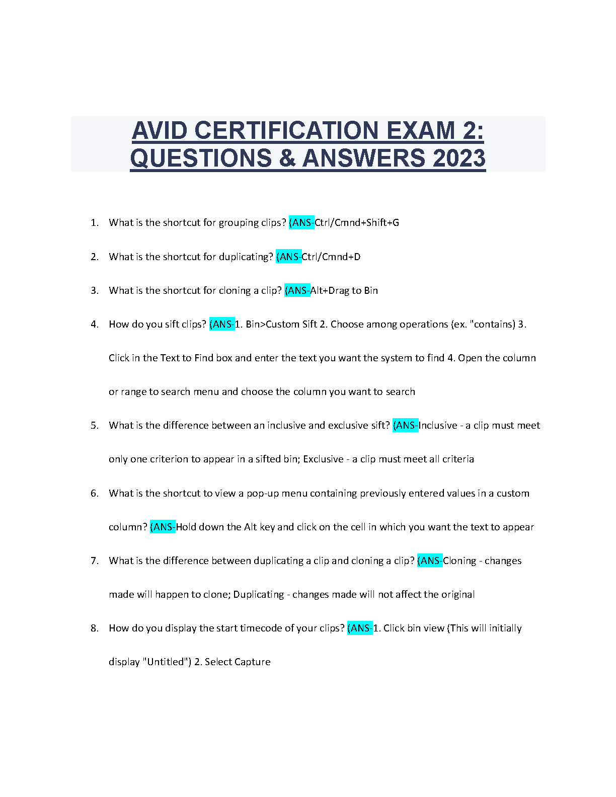 Avid Certification Exam 2: Questions & Answers 2023 Edition by Unknown Author