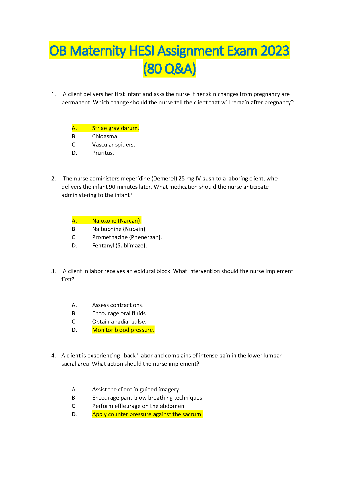 OB Maternity HESI Assignment Exam 2023 (80 Q&A) - Ace Your Exams & Avoid Resits