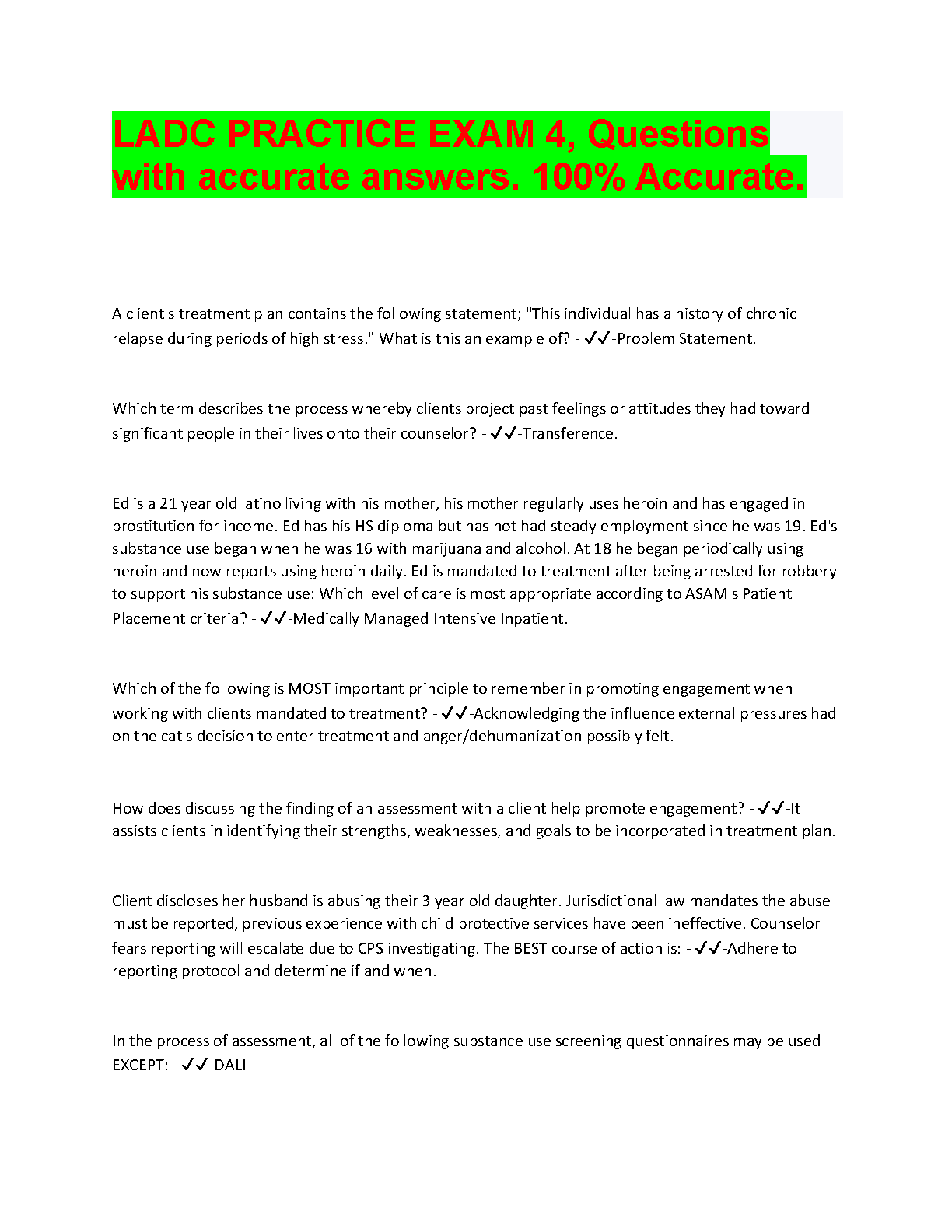 LADC Practice Exam 4 Questions & Answers: 100% Accurate, 2024/2025 Edition