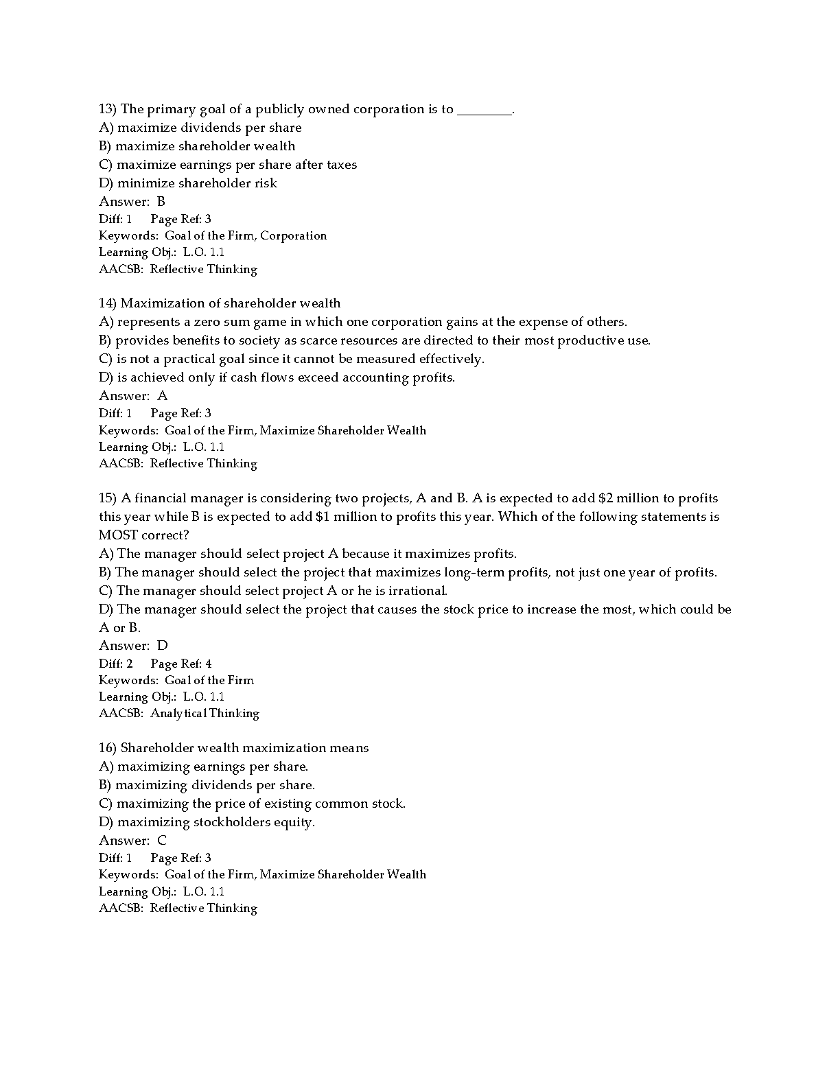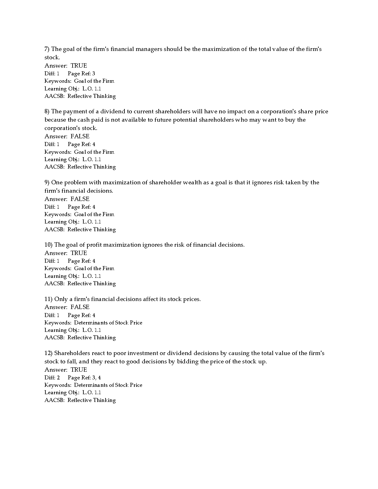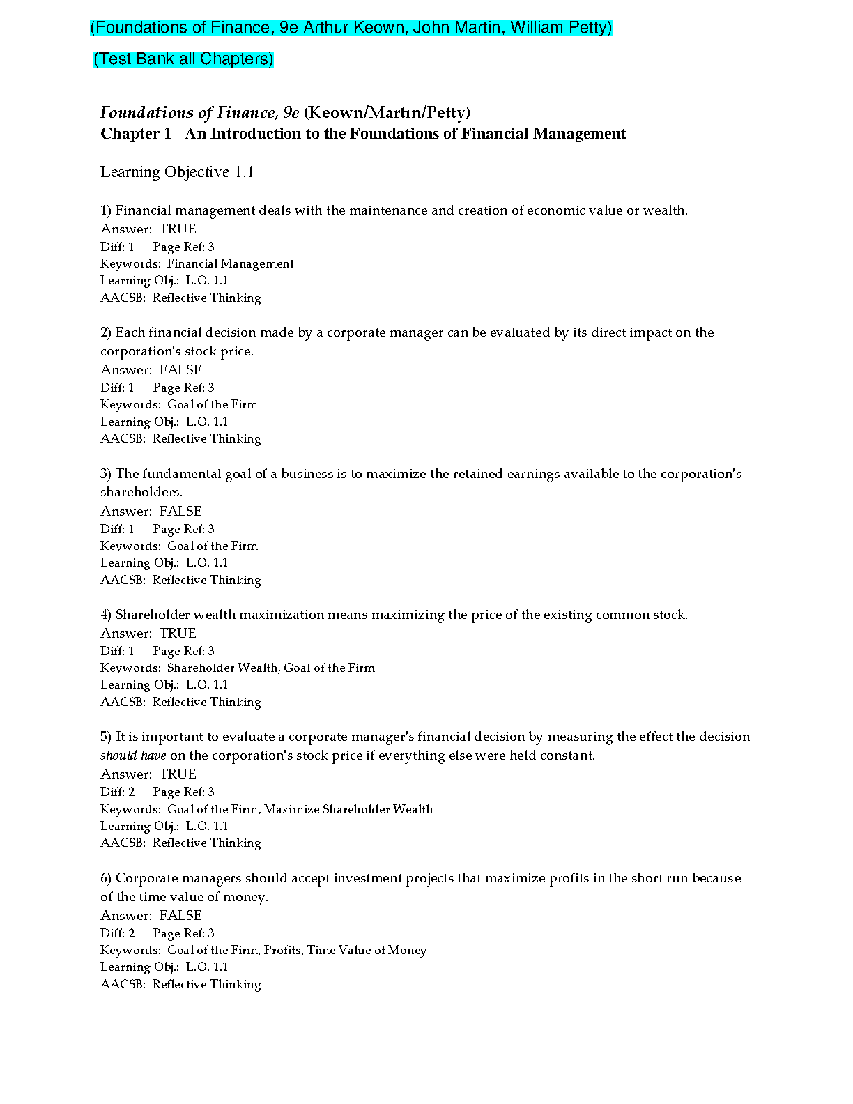 Foundations of Finance, 9e (Keown/Martin/Petty) - Test Bank for Chapters 1-11