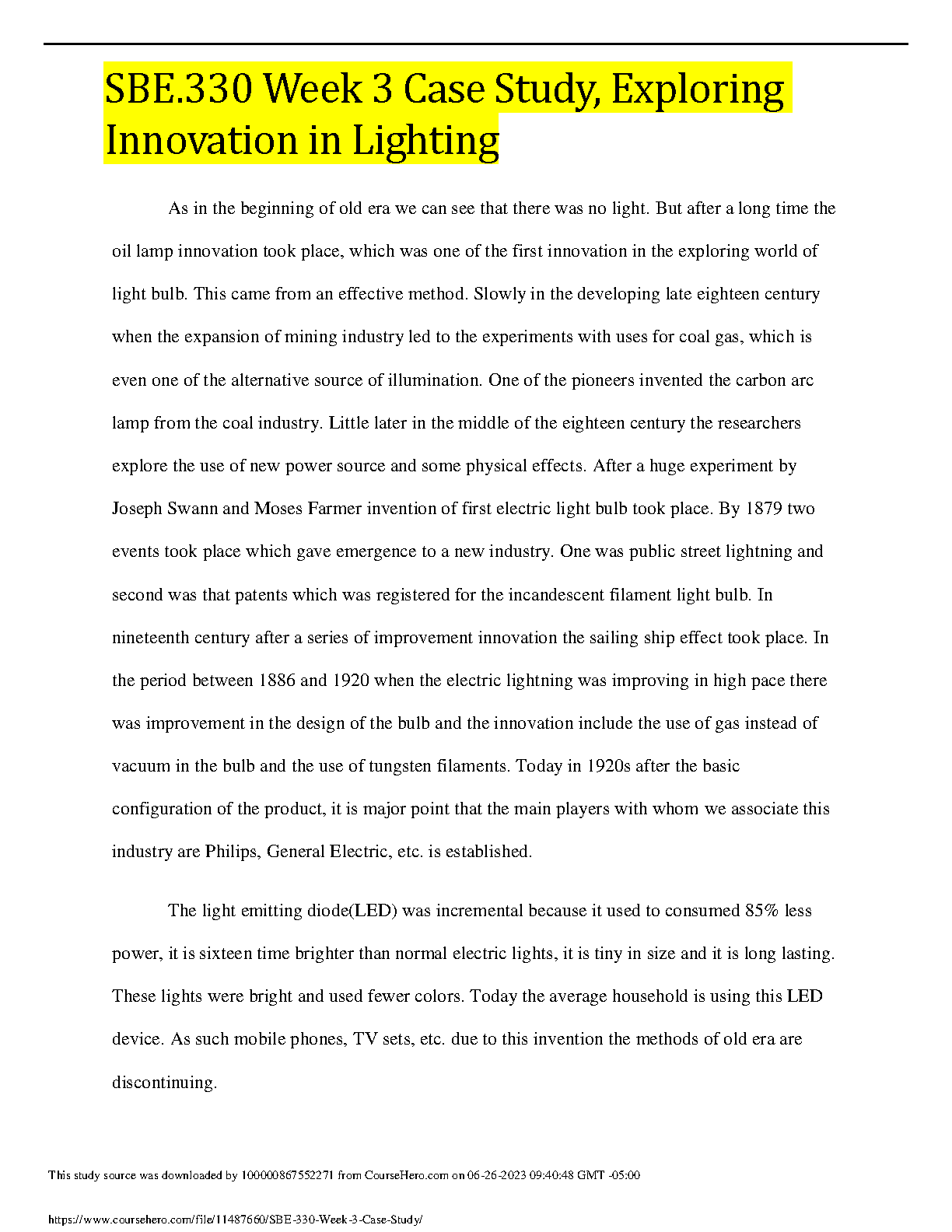 SBE.330 Week 3 Case Study: Exploring Innovation in Lighting