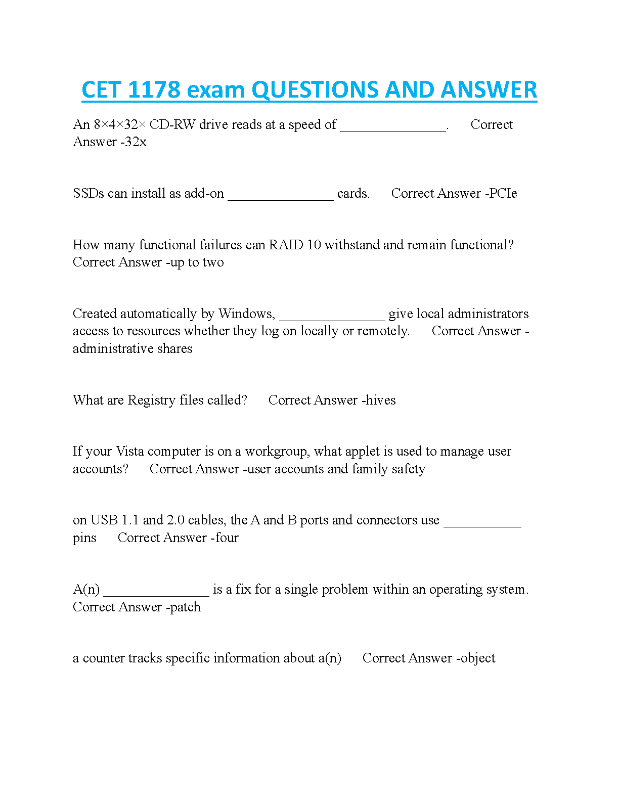 CET 1178 Exam Questions and Answers - Pass Your Exam on the First Attempt!