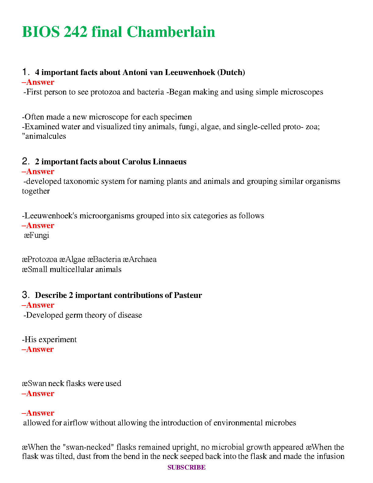 BIOS 242 Final Chamberlain - Exam Prep for 2024/2025 Success