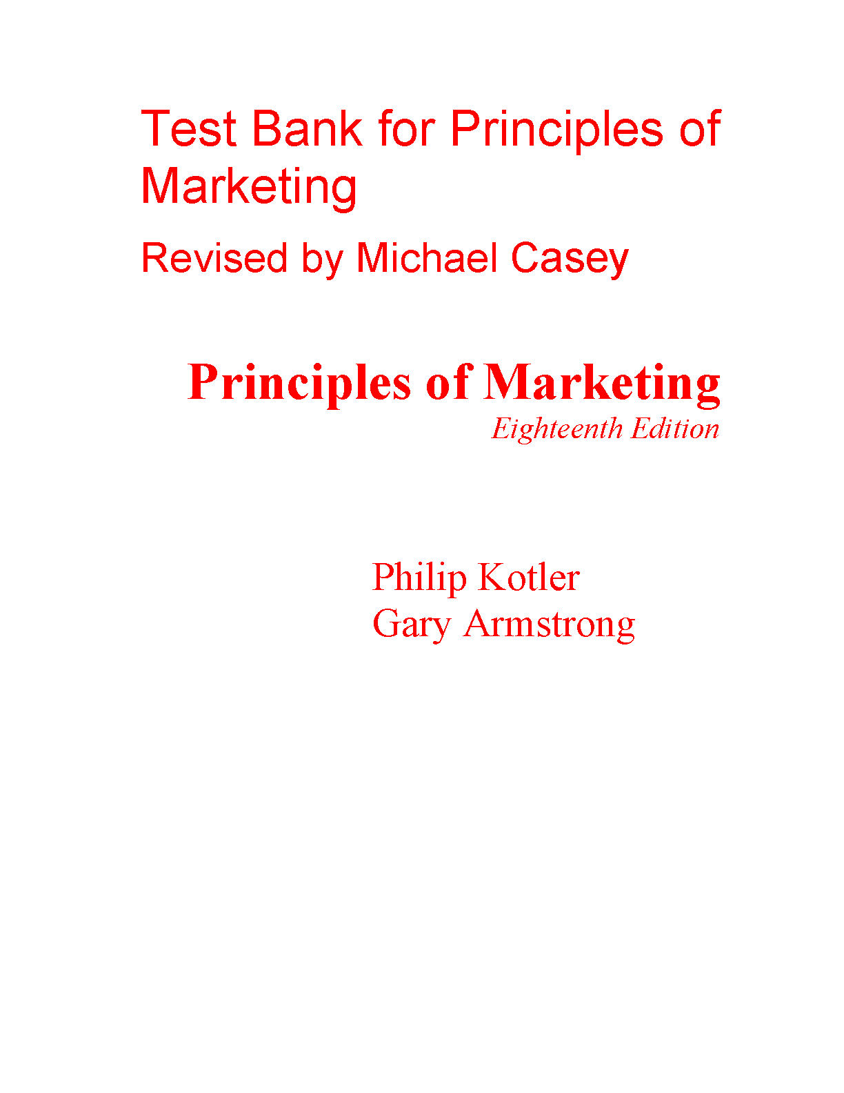 Principles of Marketing 18th Edition by Philip Kotler and Gary Armstrong Test Bank