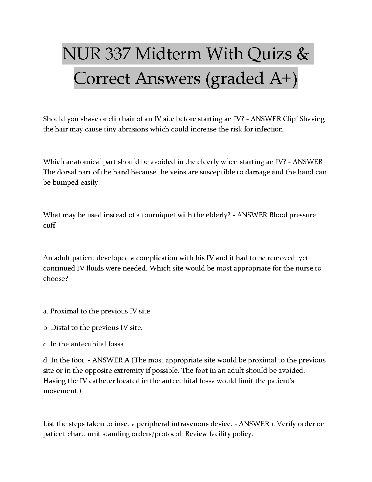 NUR 337 Midterm With Quizzes & Correct Answers (graded A+) for 2024/2025 Academic Year - Ace Your Exam on the First Attempt!