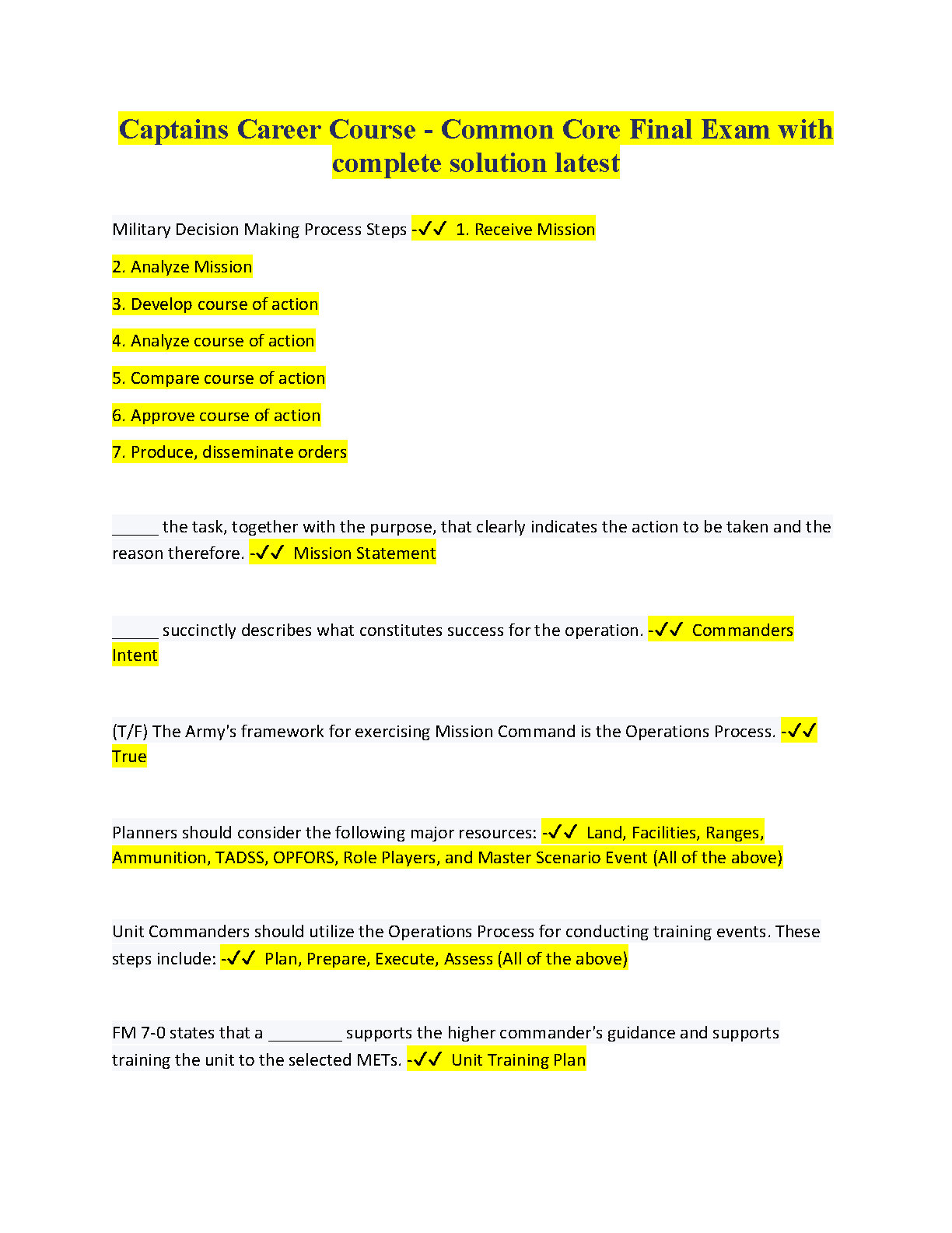 Captains Career Course - Common Core Final Exam with Complete Solution Latest Edition - By [Complete Authors Names]