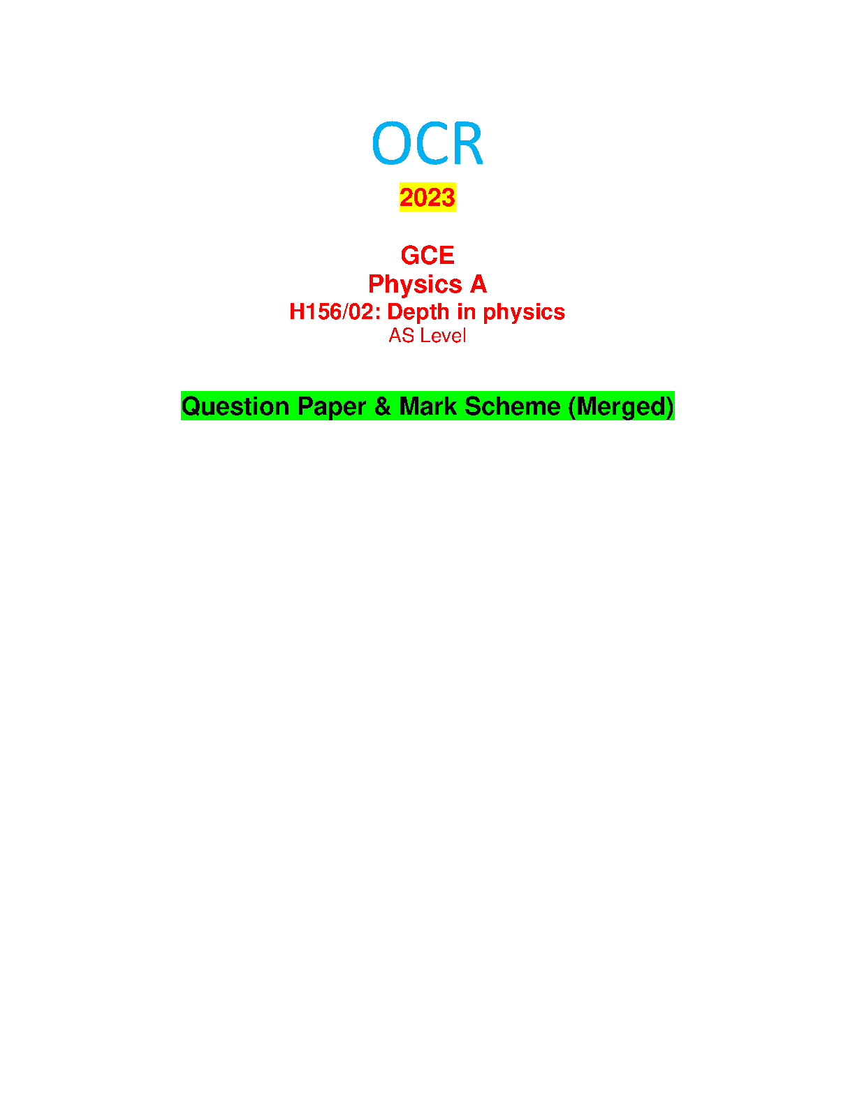 Get access to the 2023 OCR GCE Physics A H156/02: Depth in physics AS Level Question Paper and Mark Scheme (Merged). This comprehensive resource offers detailed insights into the exam structure, question types, and marking criteria.
