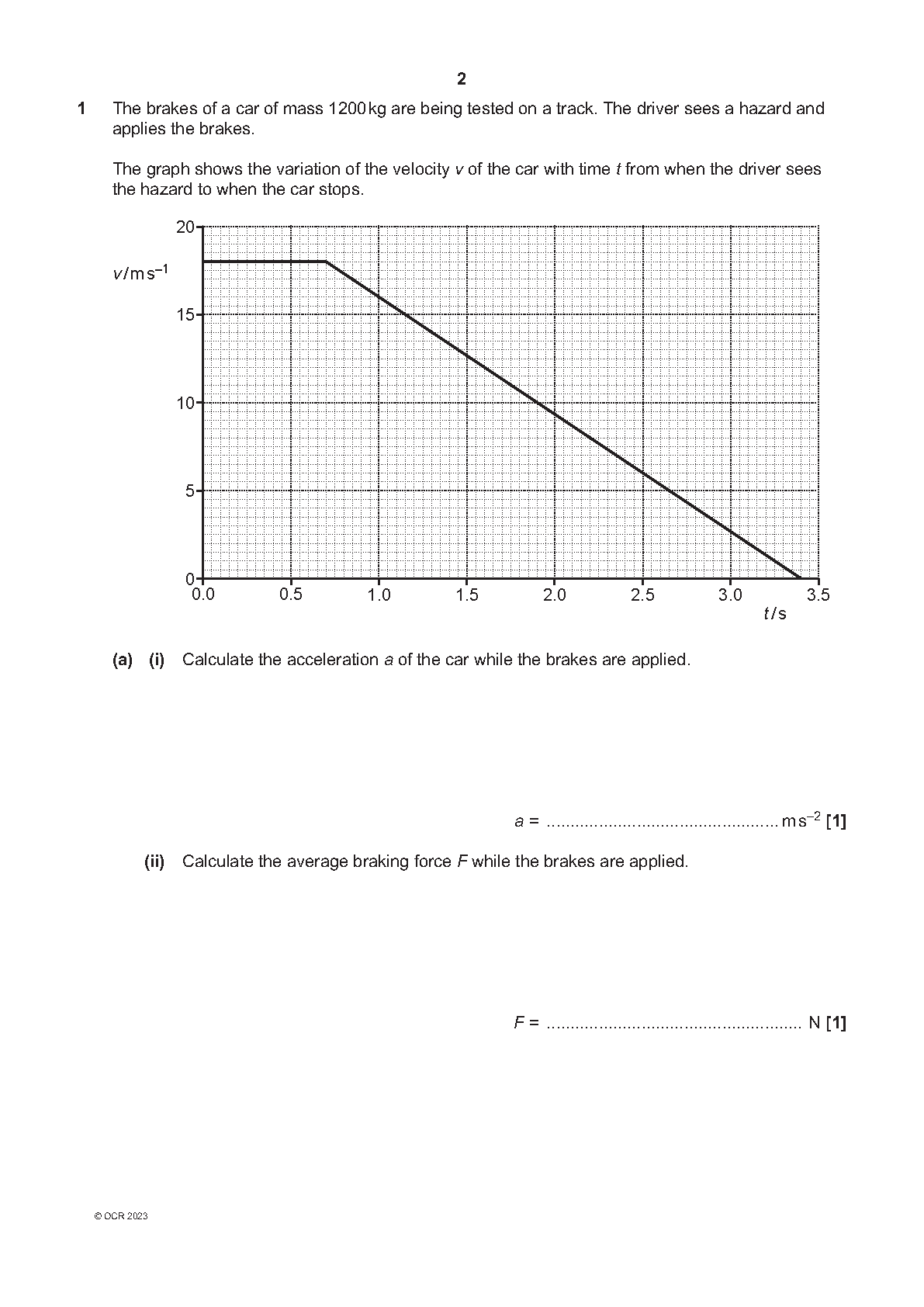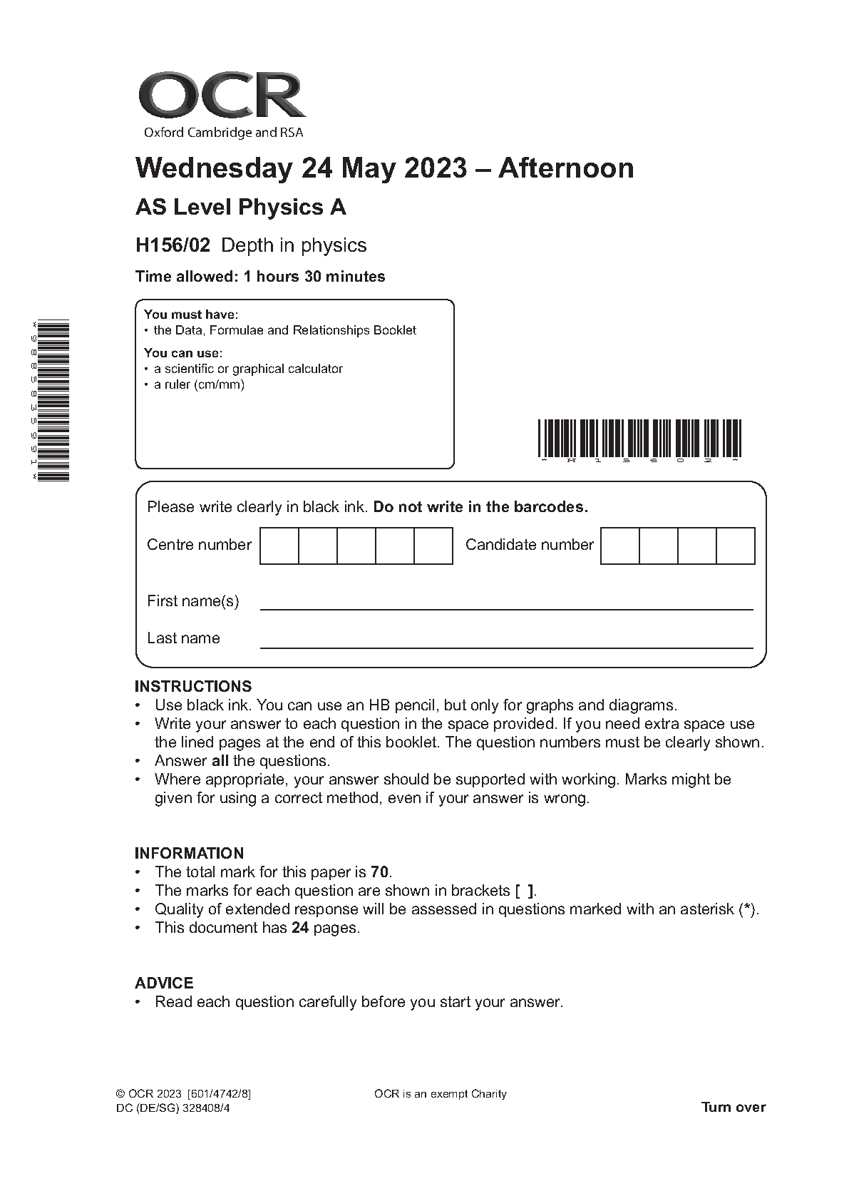 OCR GCE Physics A H156/02: Depth in physics AS Level 2023 Question Paper & Mark Scheme (Merged)