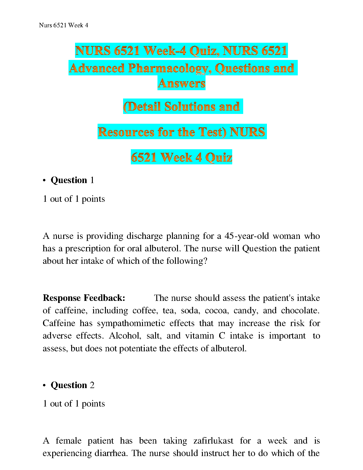 Nurs 6521 Week 4 Quiz - Nurs 6521 Advanced Pharmacology Questions and Answers (Detailed Solutions and Resources for the Test) - 2024/2025 Edition