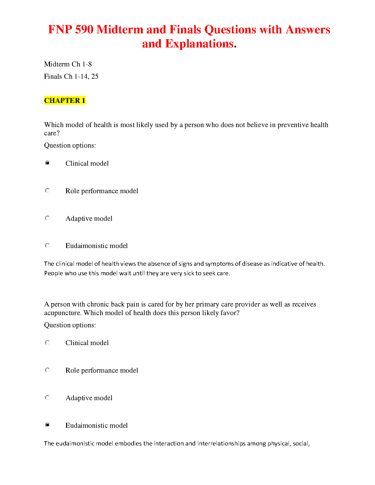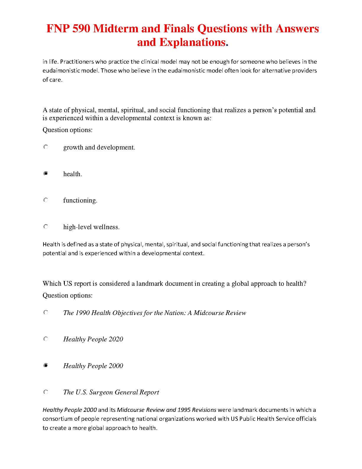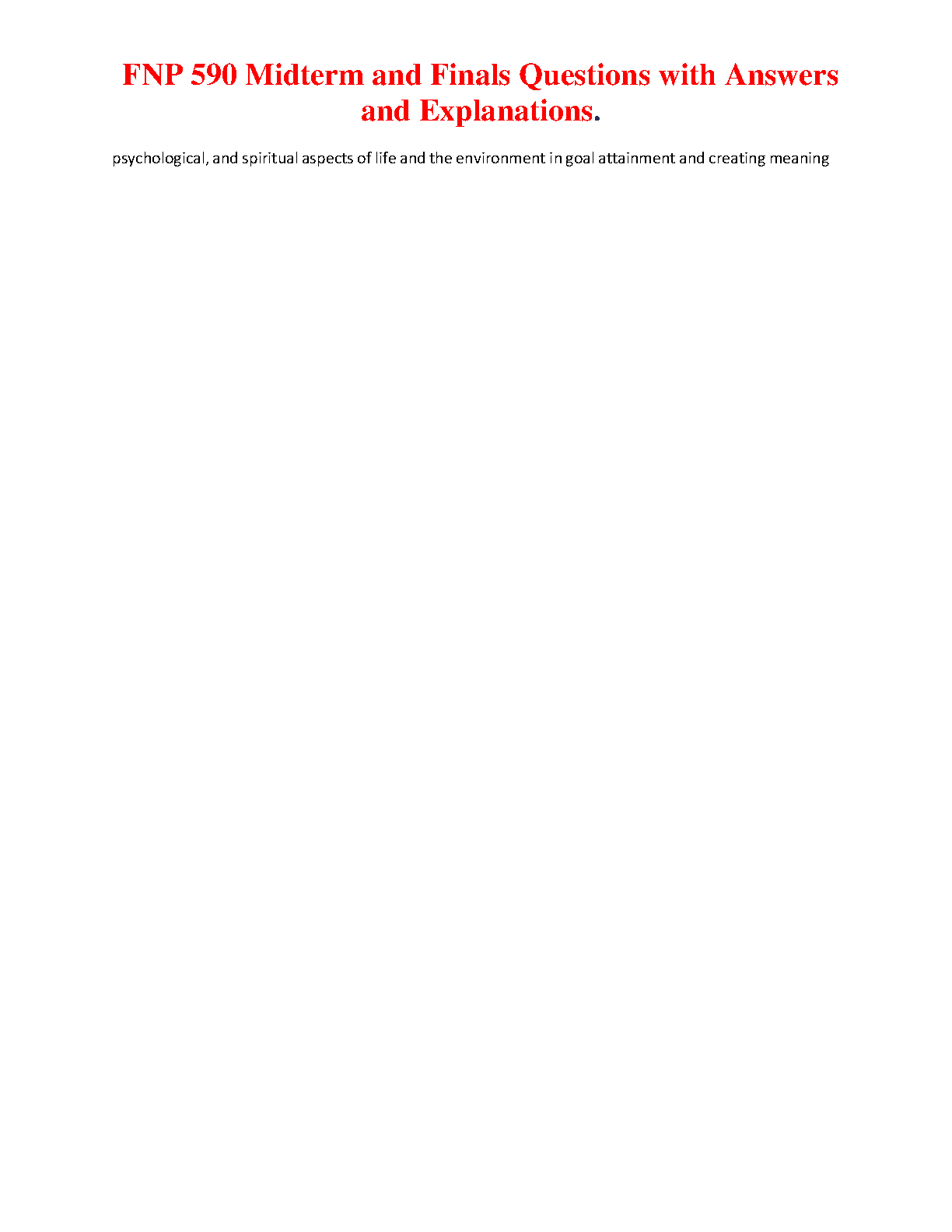 This resource contains the answers to the FNP 590 Midterm and Finals questions, providing students with a comprehensive study guide to aid their understanding of the material.