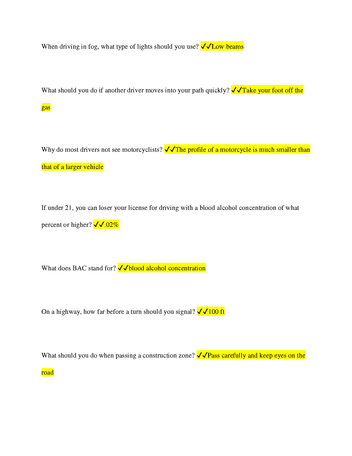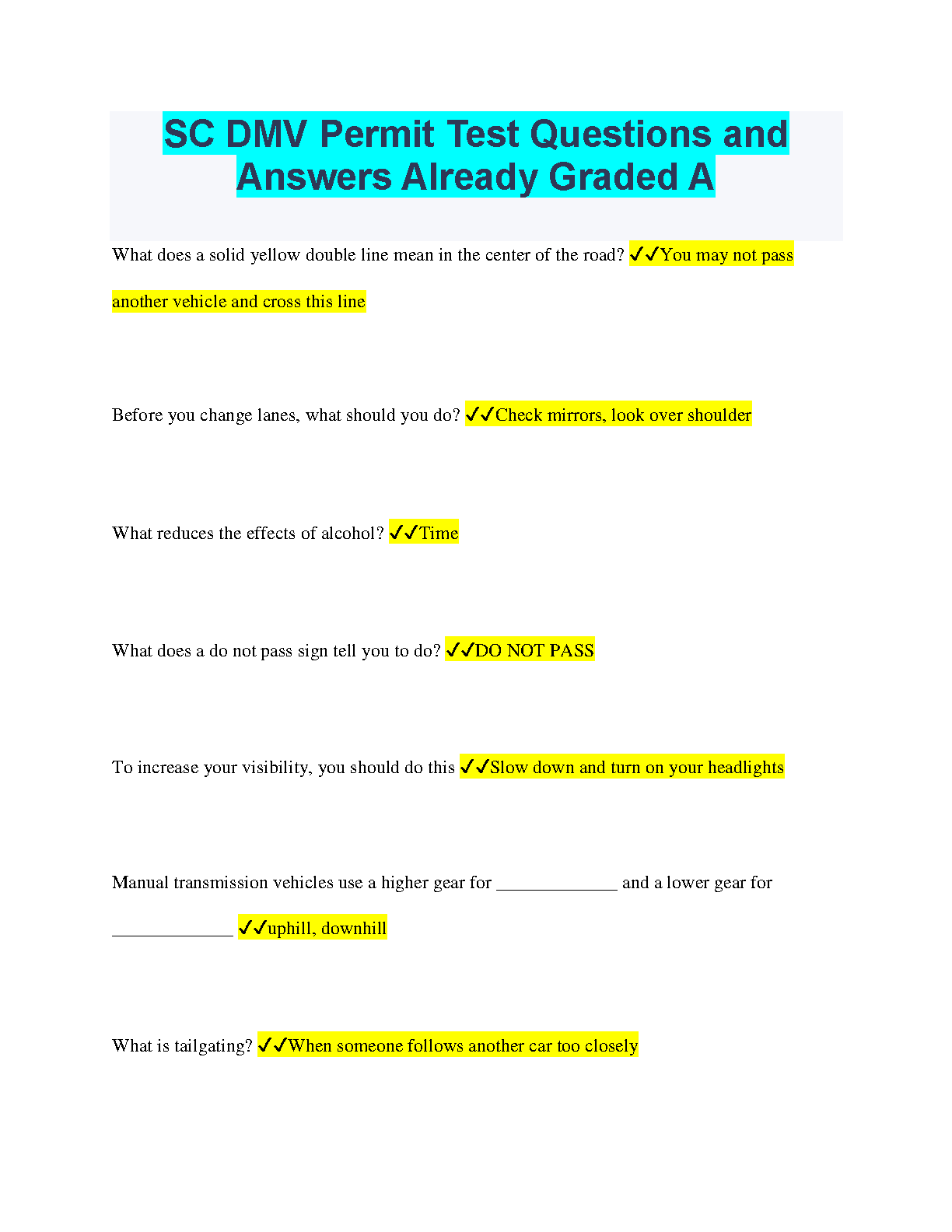 SC DMV Permit Test Questions and Answers Already Graded A