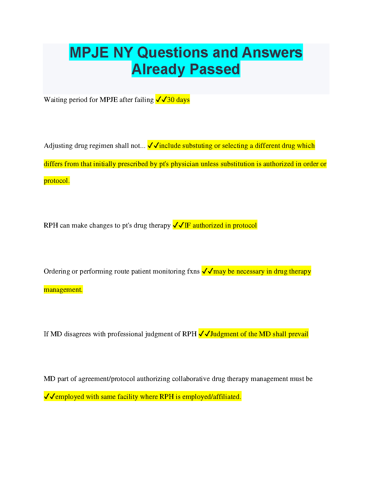 MPJE NY Questions and Answers - Pass on the First Attempt - 2024/2025 Edition