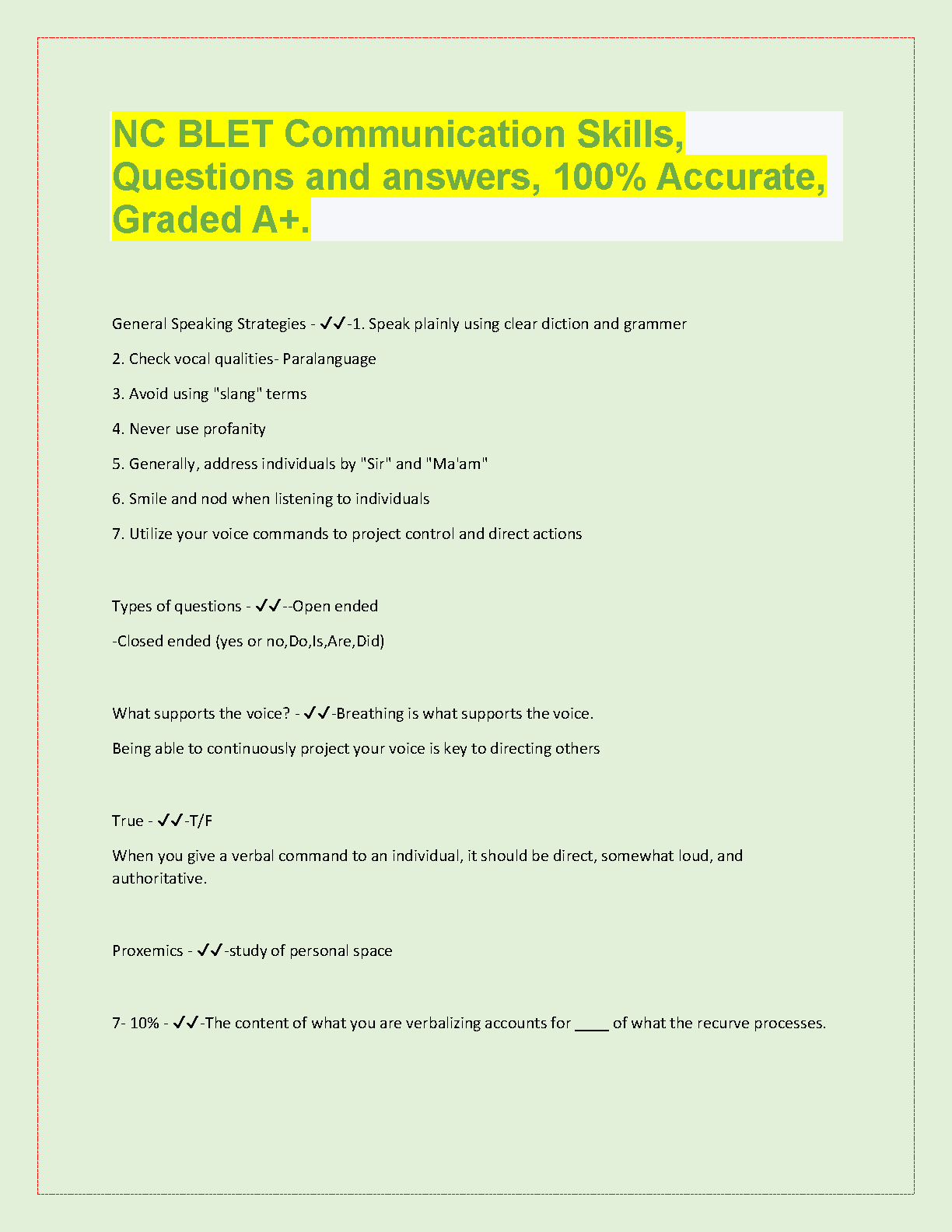 NC BLET Communication Skills: Questions and Answers, 100% Accurate, Graded A+