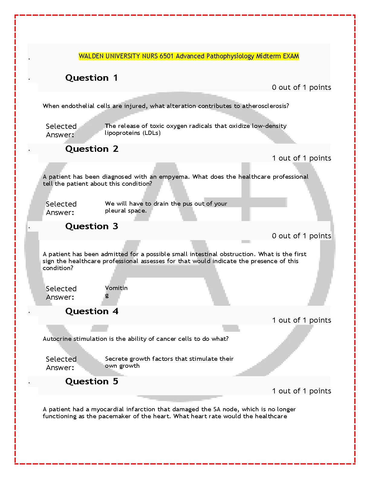 WALDEN UNIVERSITY NURS 6501 Advanced Pathophysiology Midterm EXAM UPDATED VERSION