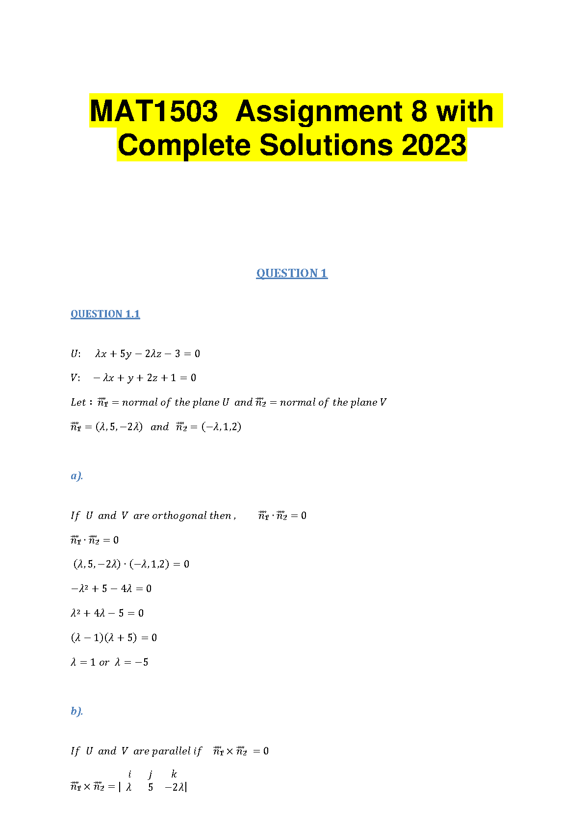 MAT1503 Assignment 8 with Complete Solutions 2023