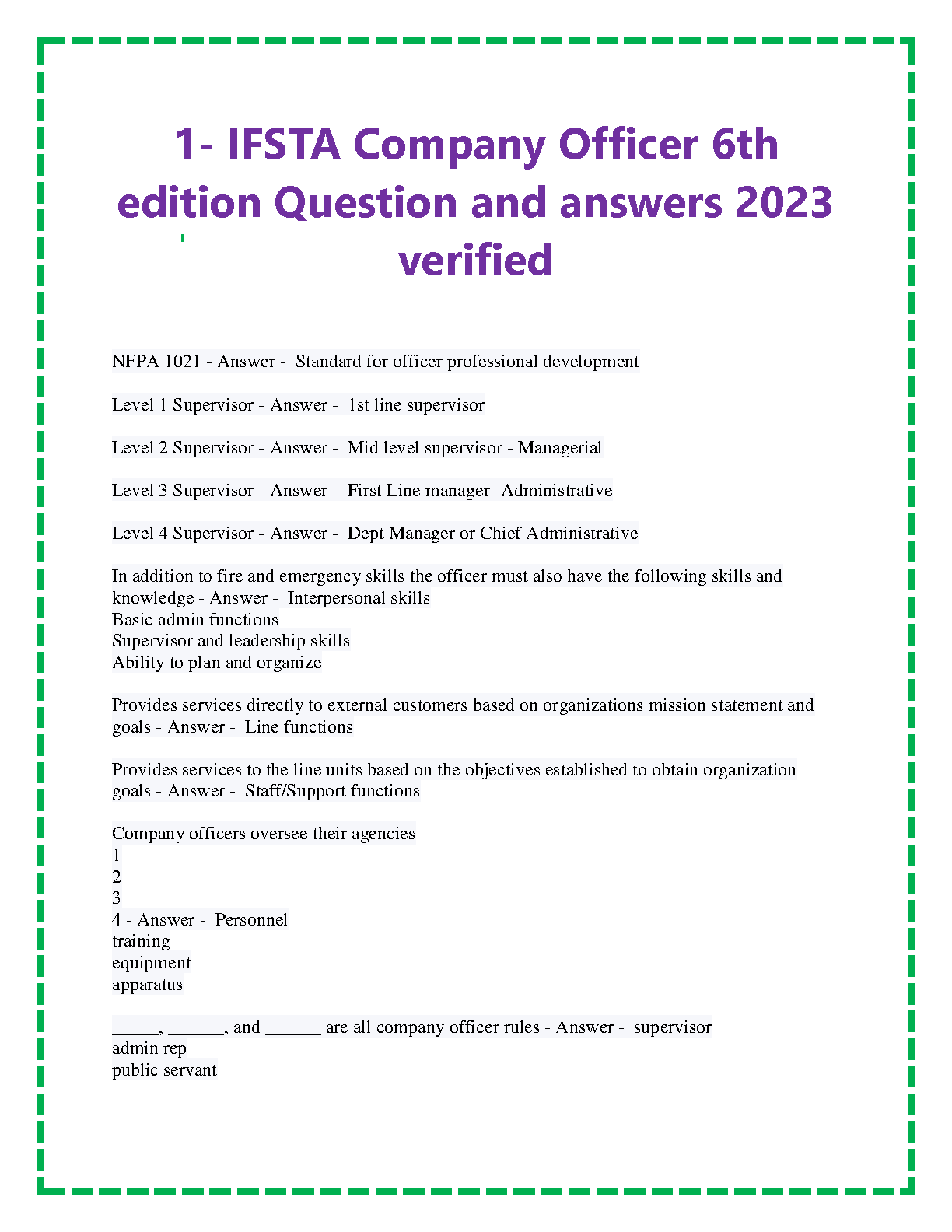 IFSTA Company Officer 6th Edition Question and Answers 2023 Verified - by IFSTA