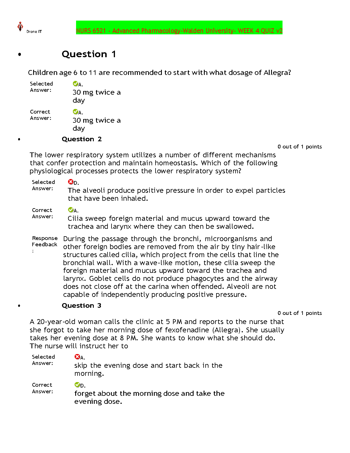 NURS 6521 - Advanced Pharmacology Walden University WEEK 4 QUIZ v2 UPDATED SOLUTION 2023
