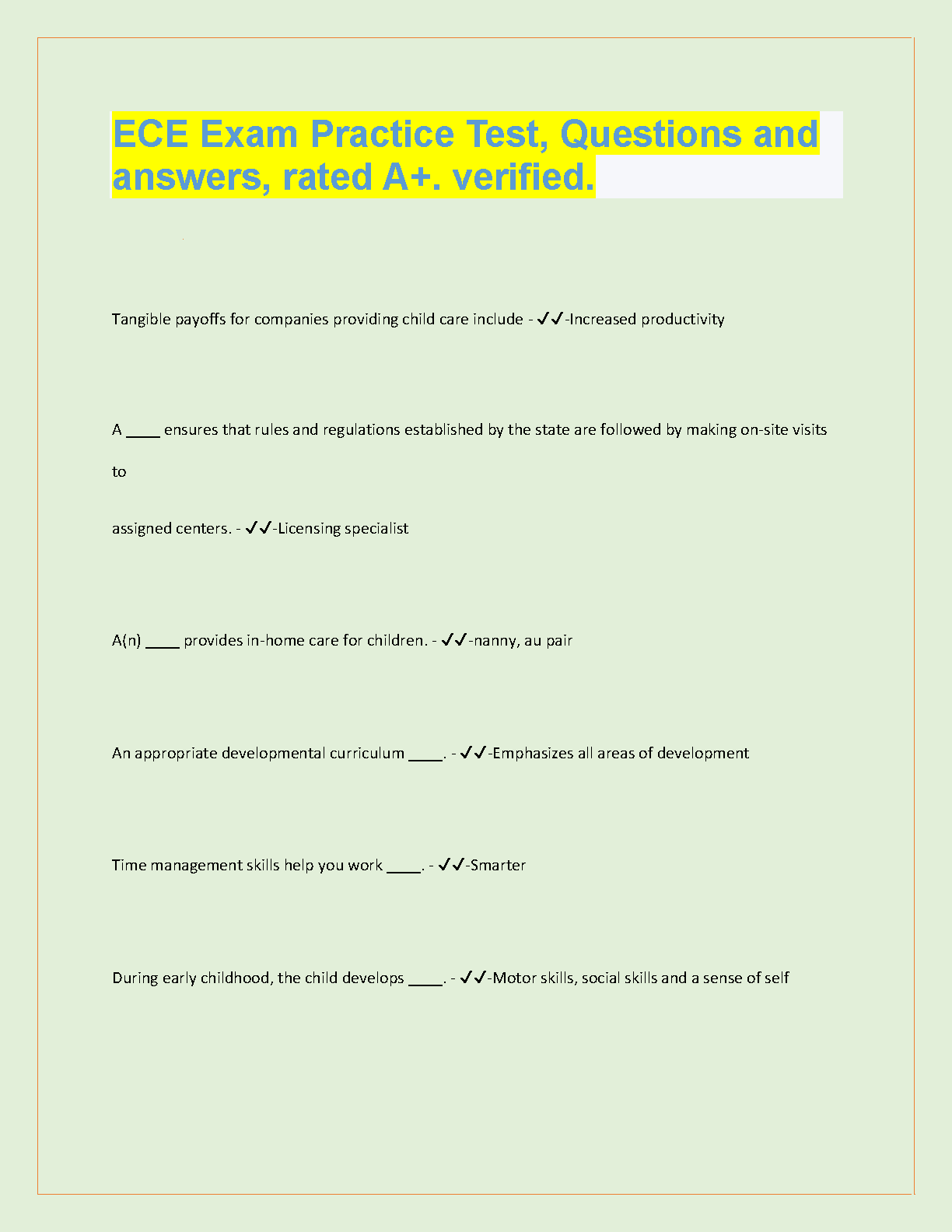 ECE Exam Practice Test, Questions and answers, rated A . verified.