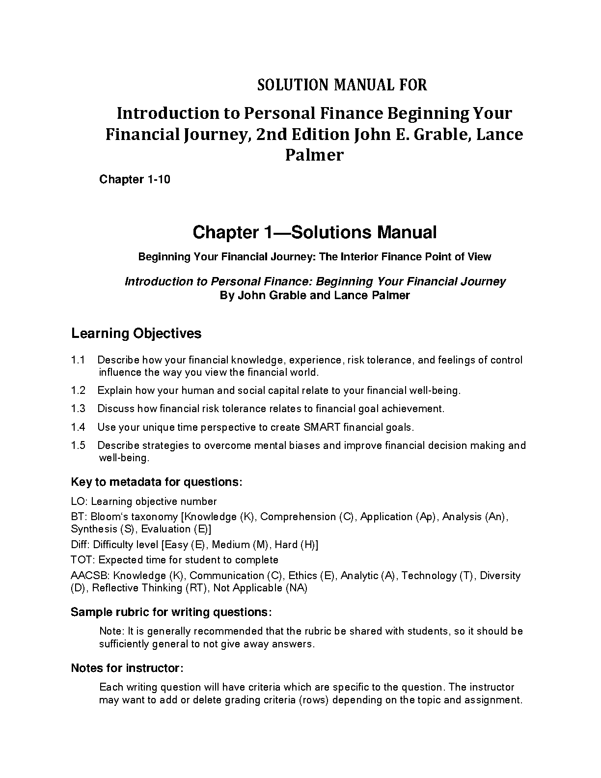 This comprehensive solution manual for Introduction to Personal Finance, 2nd Edition by John Drabble and Lance Palmer offers detailed answers and explanations to all the exercises and problems found in the textbook. Master your understanding of personal finance concepts and succeed in your course with this valuable study aid.
