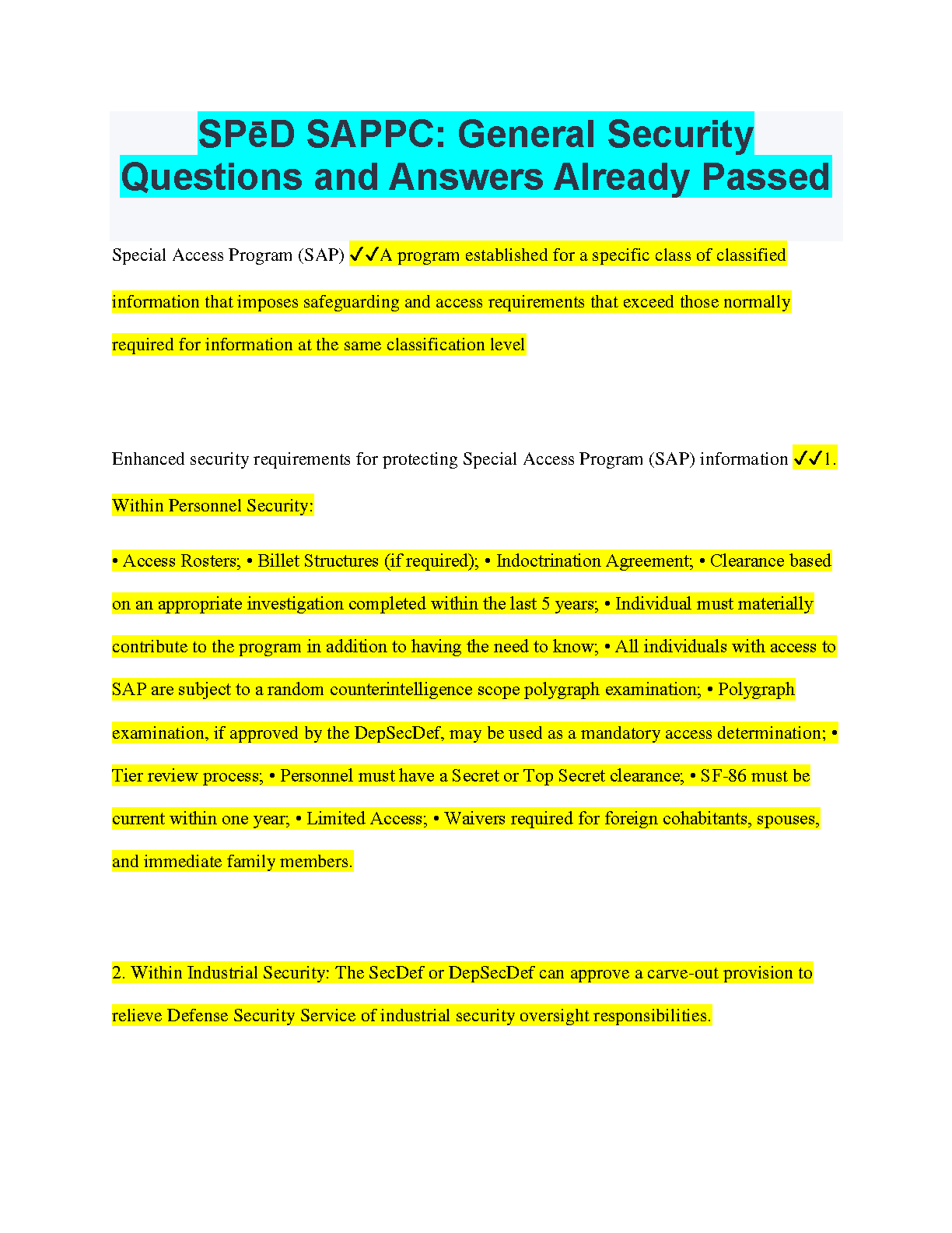 This comprehensive guide provides detailed answers to all general security questions related to SPED SAPPC. It is designed to help students master the subject matter and ace their exams on the first attempt.