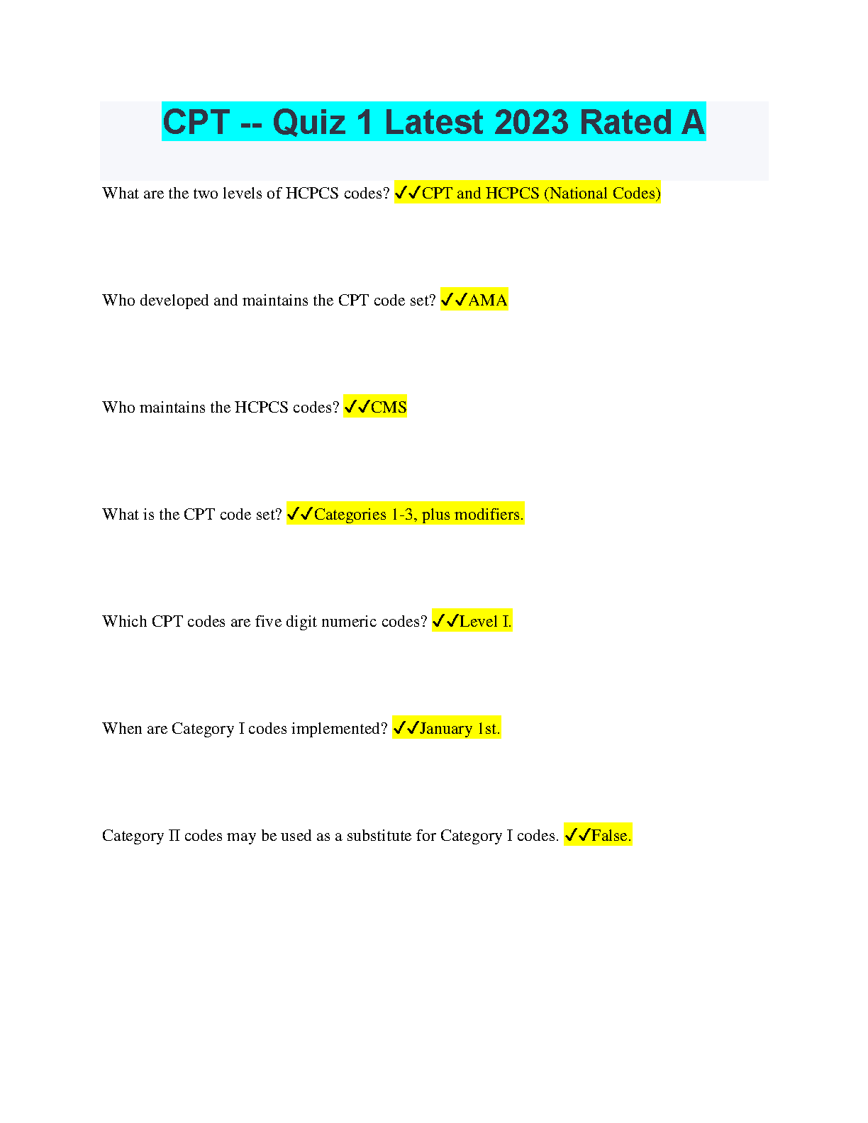 CPT Quiz 1 - Latest 2023 Edition - 2024/2025 Academic Year - Pass Your Exam on the First Attempt!
