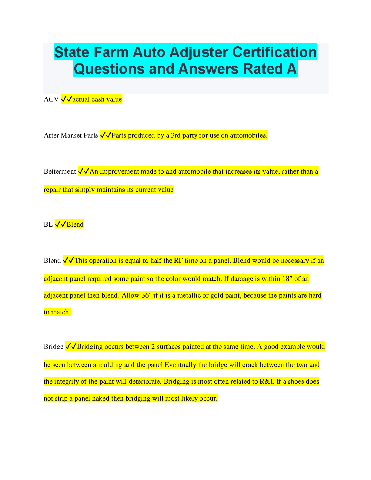 State Farm Auto Adjuster Certification Questions and Answers Rated A+. DOWNLOAD on www.hackedexams.com INSTANTLY.