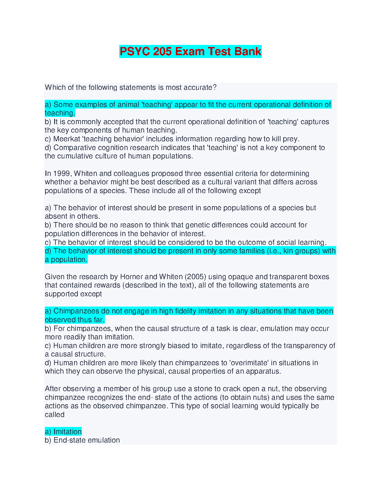 Prepare for success in PSYC 205 with our expertly curated exam test bank. This comprehensive guide provides essential study materials, practice questions, and solutions, designed to help you master the course concepts and achieve your desired exam results.