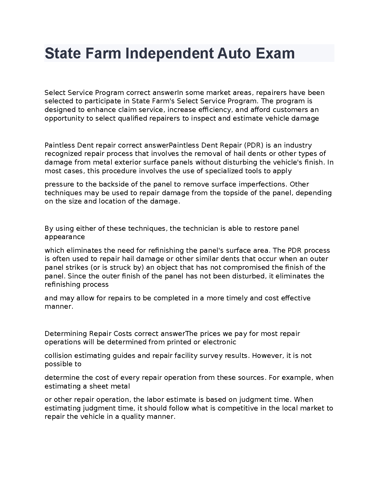 State Farm Independent Auto Exam WITH VERIFIED ANSWERS 2023. DOWNLOAD on www.hackedexams.com INSTANTLY.