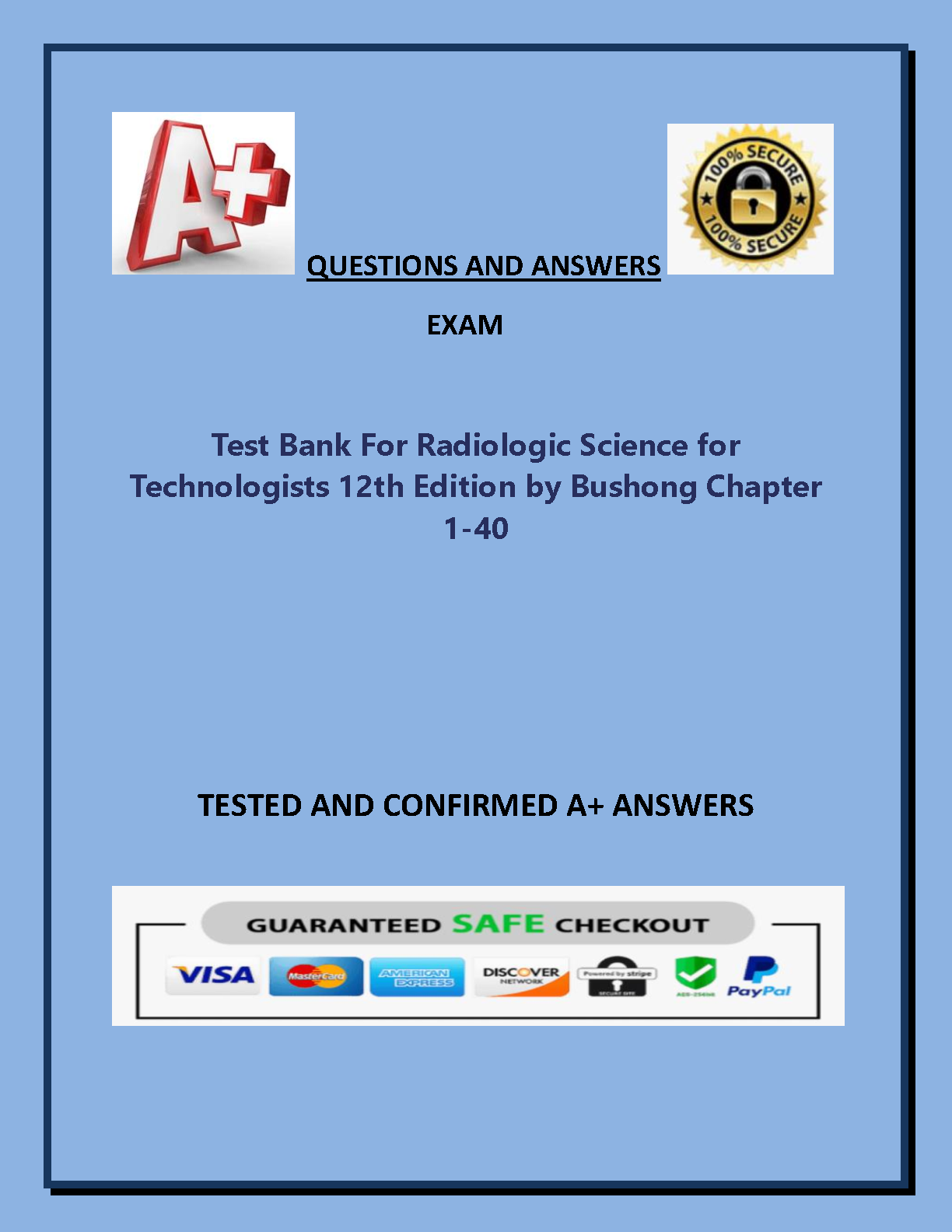 Radiologic Science for Technologists 12th Edition Test Bank - by Bushong, Stewart C.; Bushong, Stephen C.