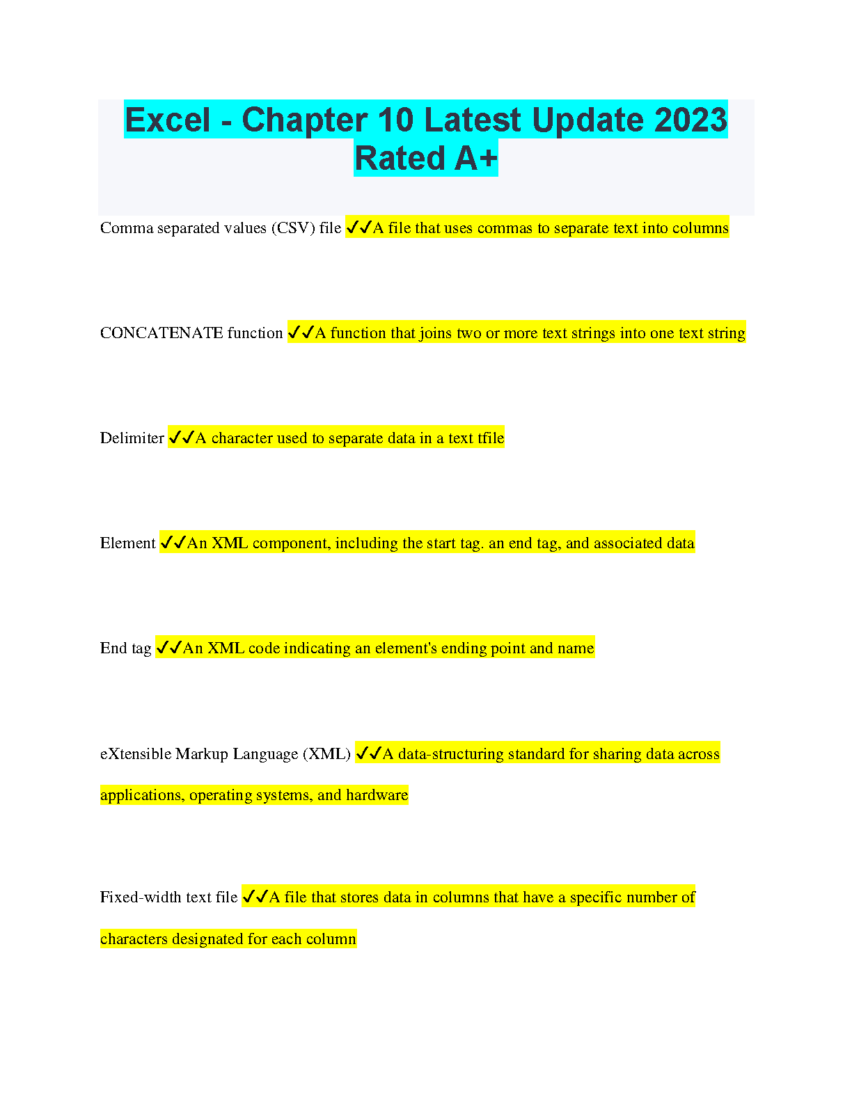 Excel Chapter 10 Latest Update 2023 for 2024/2025 Academic Year: Ace Your Exams on the First Attempt