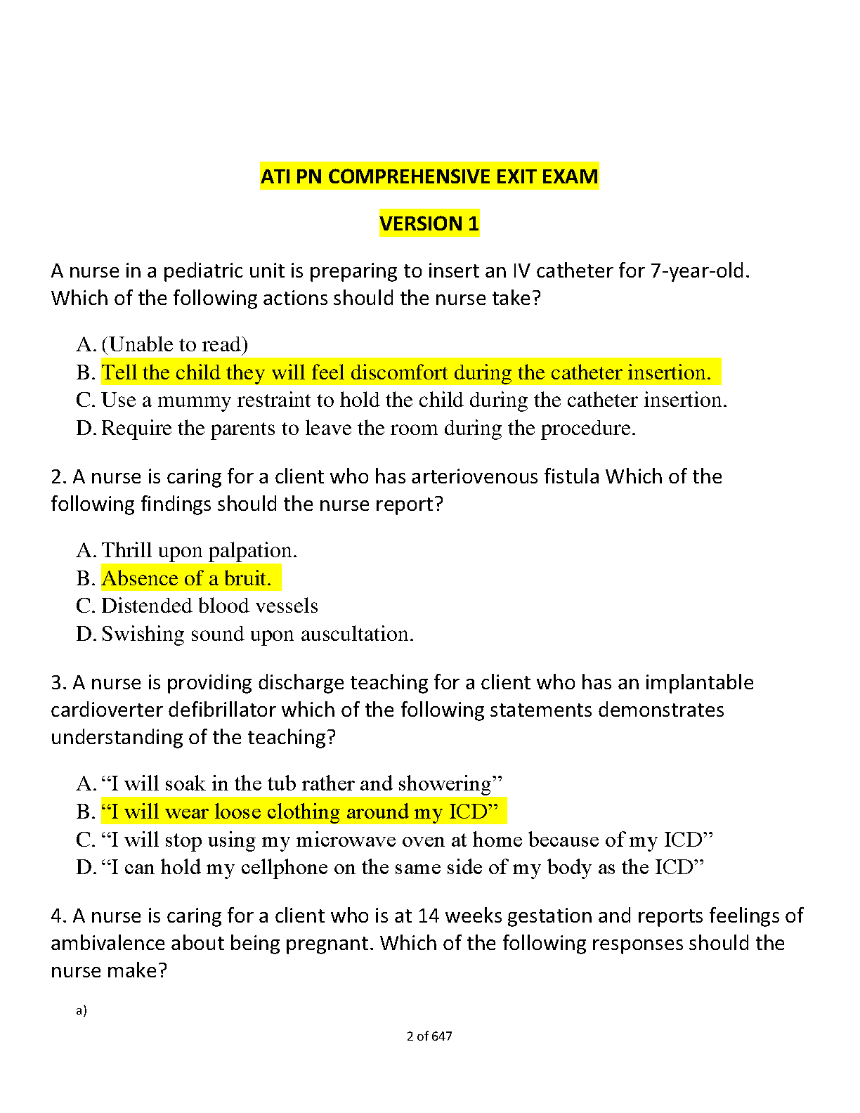 ATI PN Comprehensive Exit Exam Version 1 - Latest Edition 2024/2025 - Pass Your Nursing Exams on the First Attempt