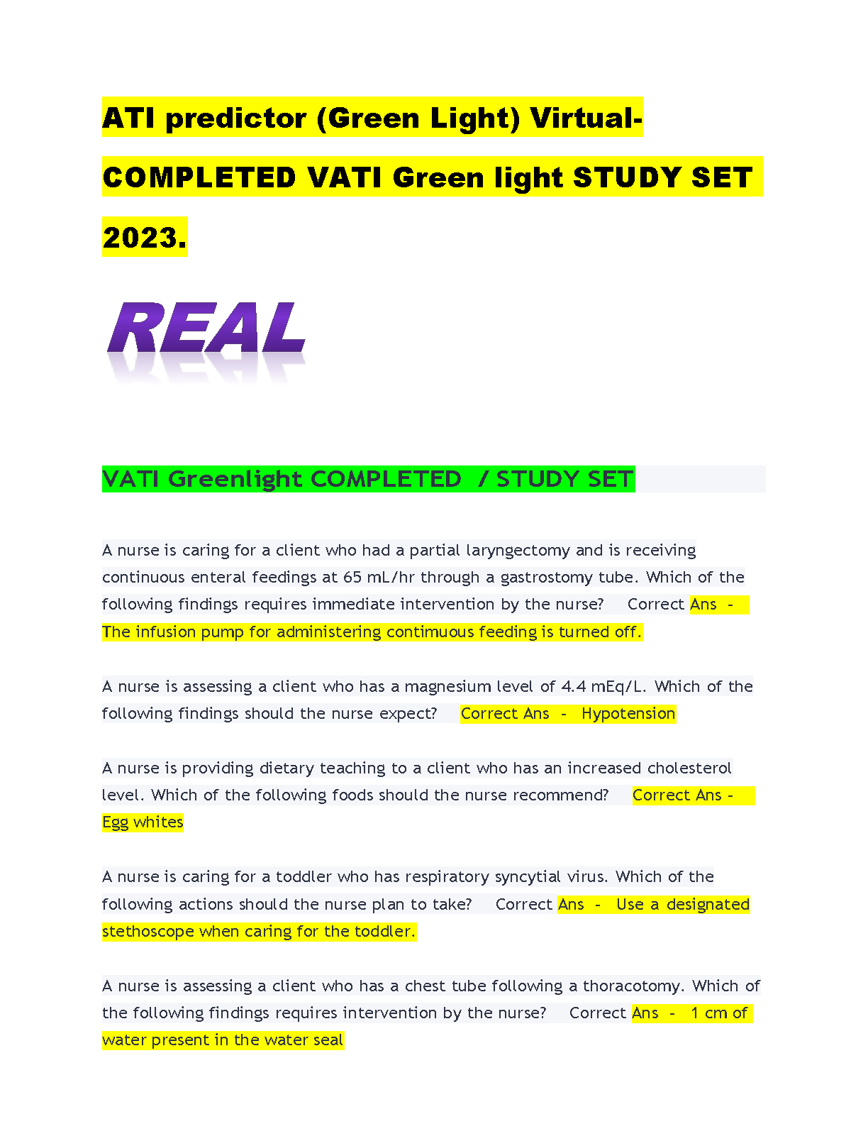 Ace your nursing exams with this comprehensive ATI Greenlight Completed Study Set 2023. This set includes a vast collection of practice questions and real-world scenarios designed to boost your confidence and prepare you for success.