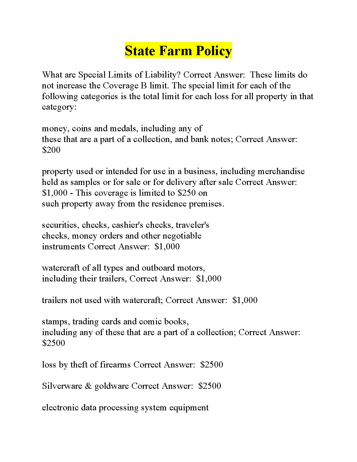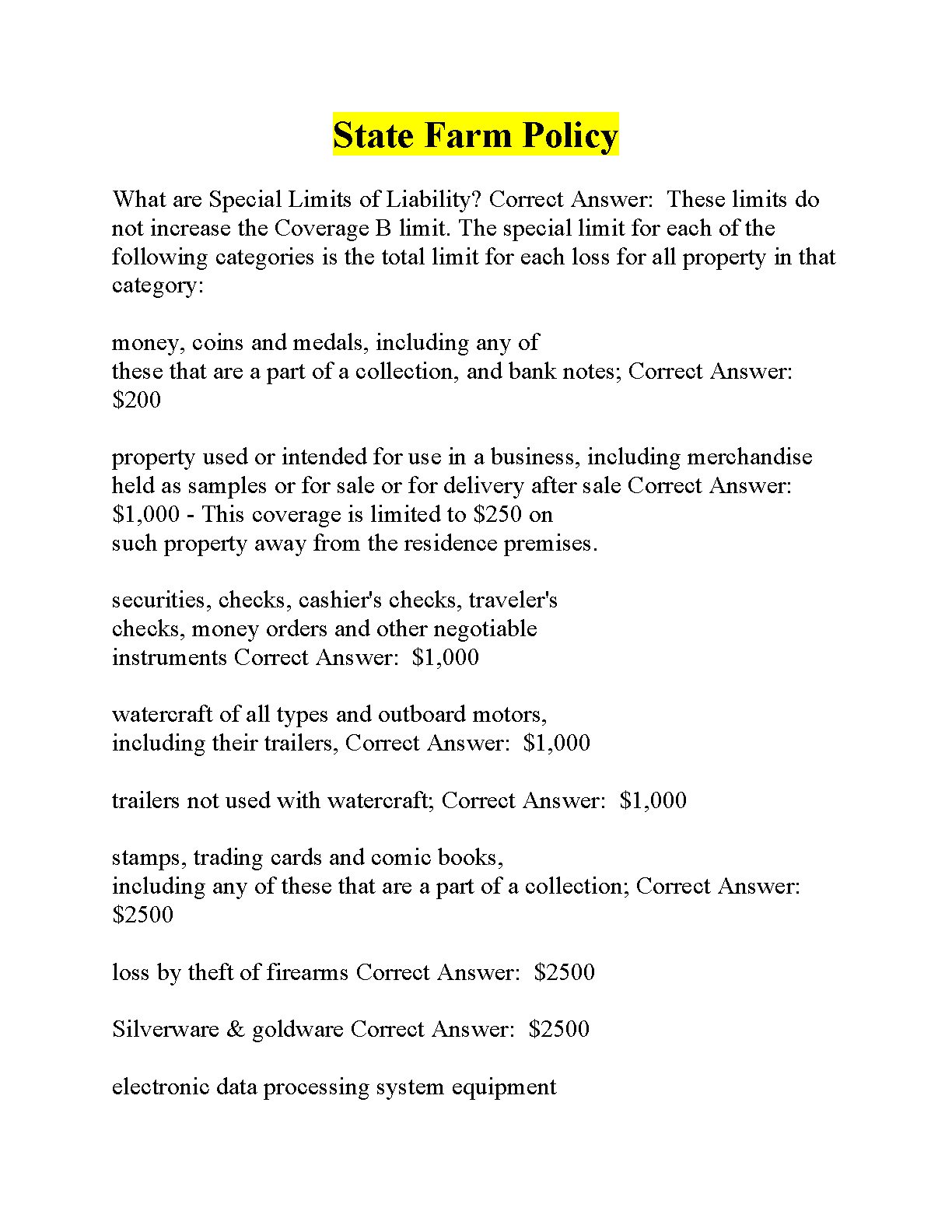 State Farm Policy QUESTIONS AND VERIFIED ANSWERS 2023. DOWNLOAD on www.hackedexams.com INSTANTLY.