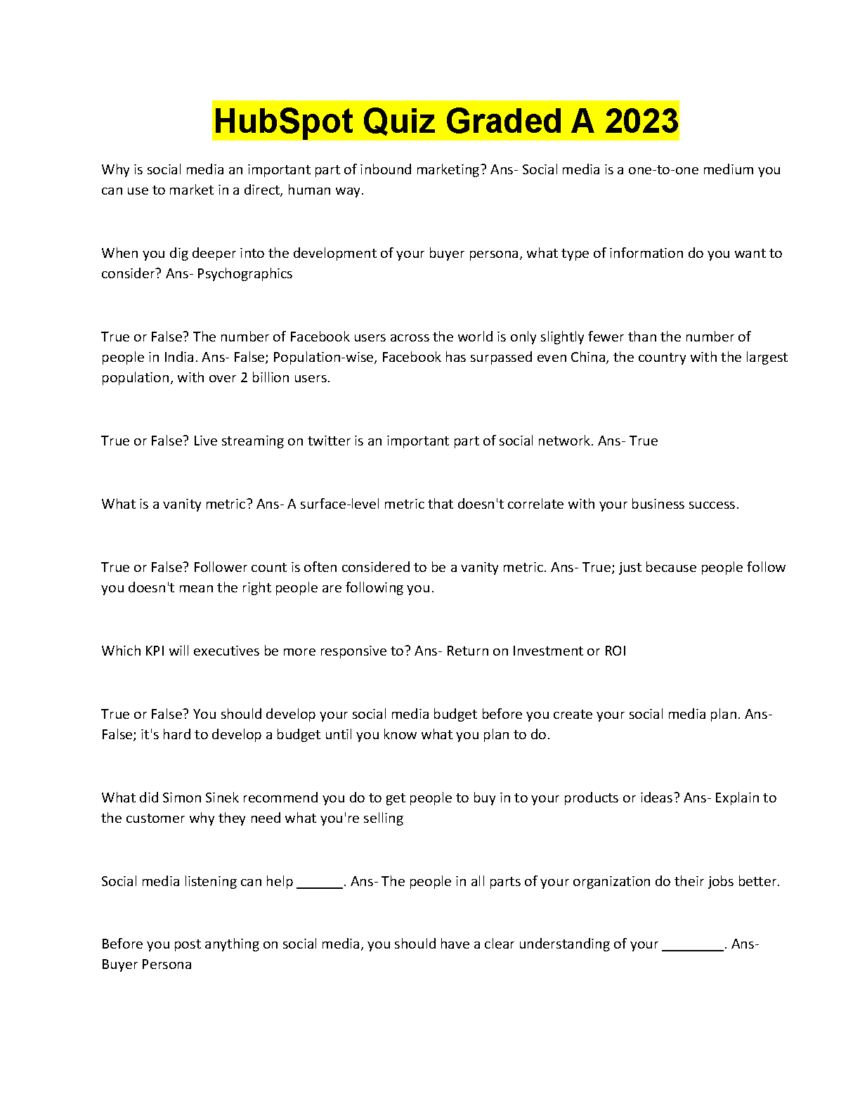 HubSpot Quiz Graded A 2023: A Comprehensive Guide for Mastering Inbound Marketing by Brian Halligan and Dharmesh Shah