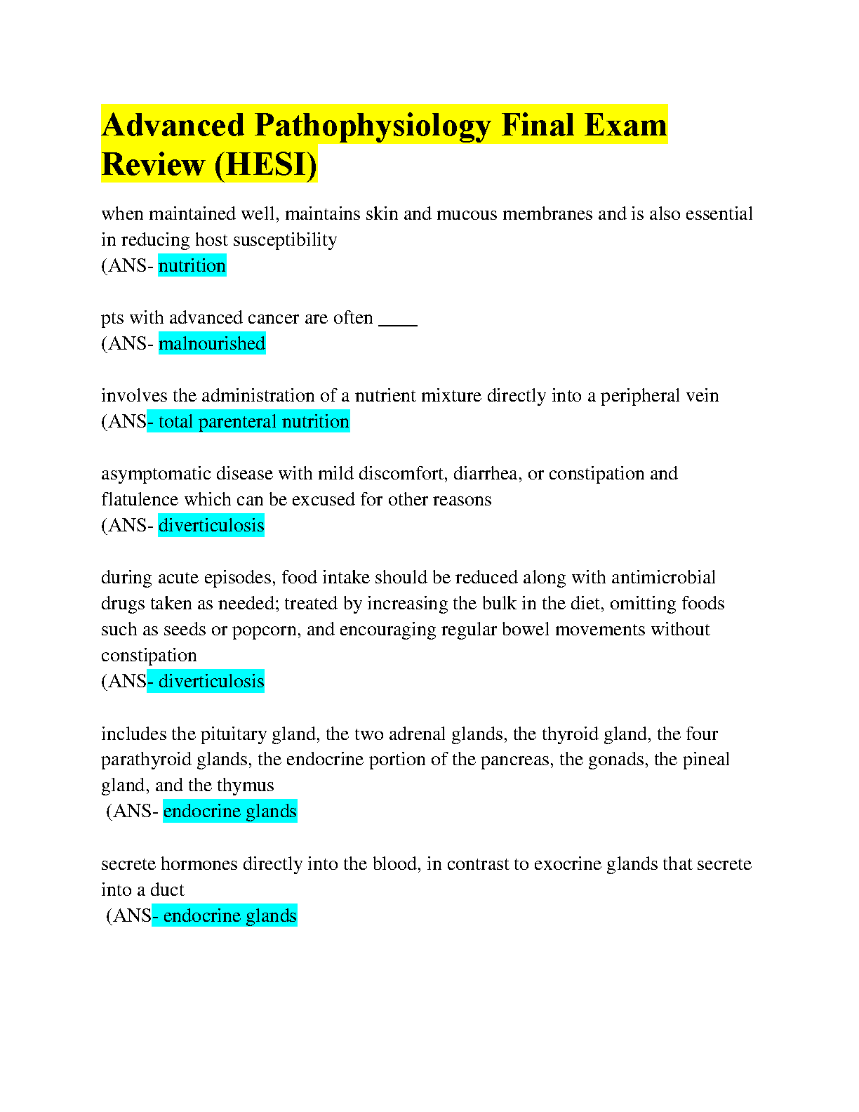 Advanced Pathophysiology Final Exam Review (HESI). DOWNLOAD on www.hackedexams.com INSTANTLY.
