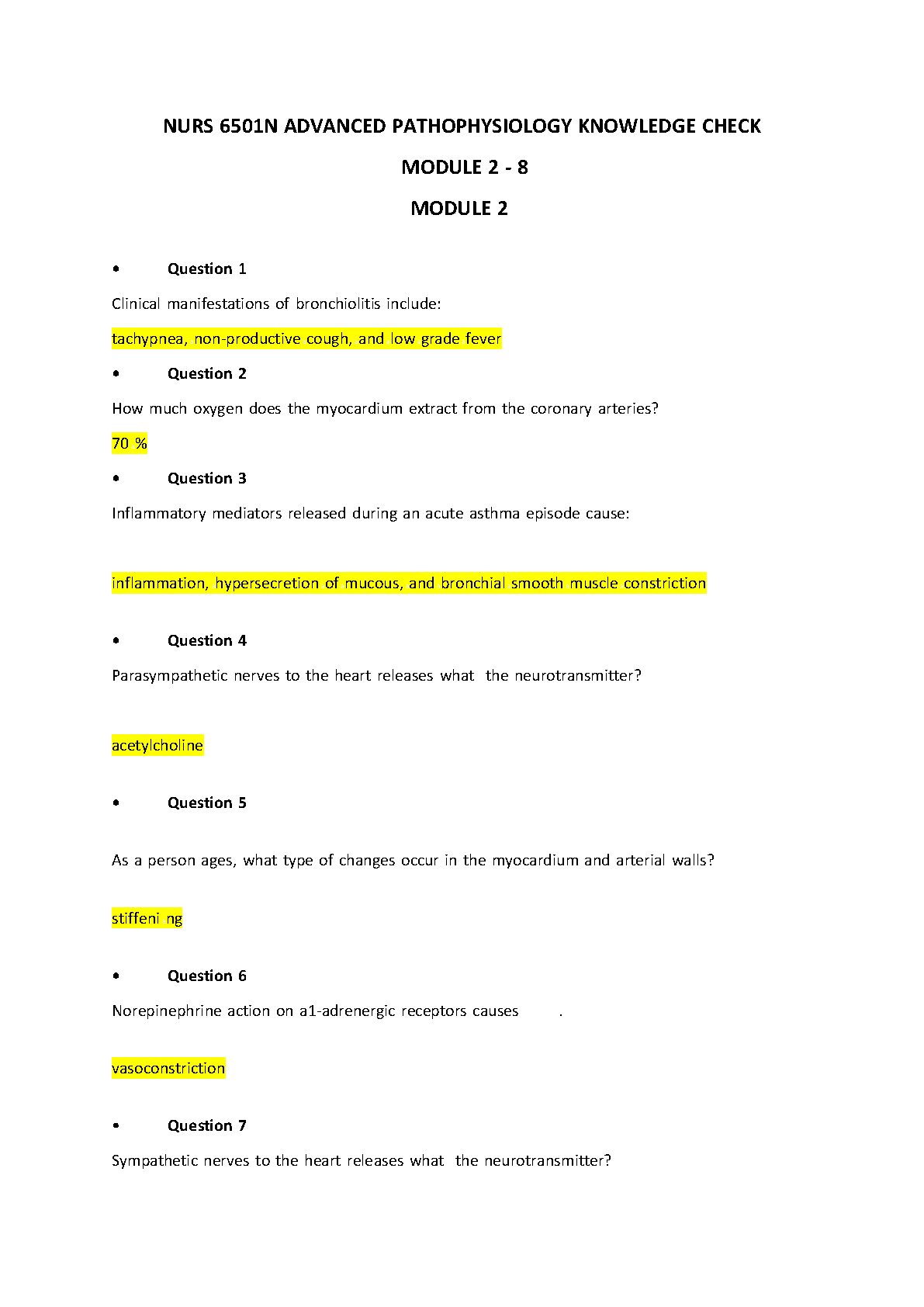 NURS 6501N ADVANCED PATHOPHYSIOLOGY KNOWLEDGE CHECK MODULE 2- 8 100% CORRECT