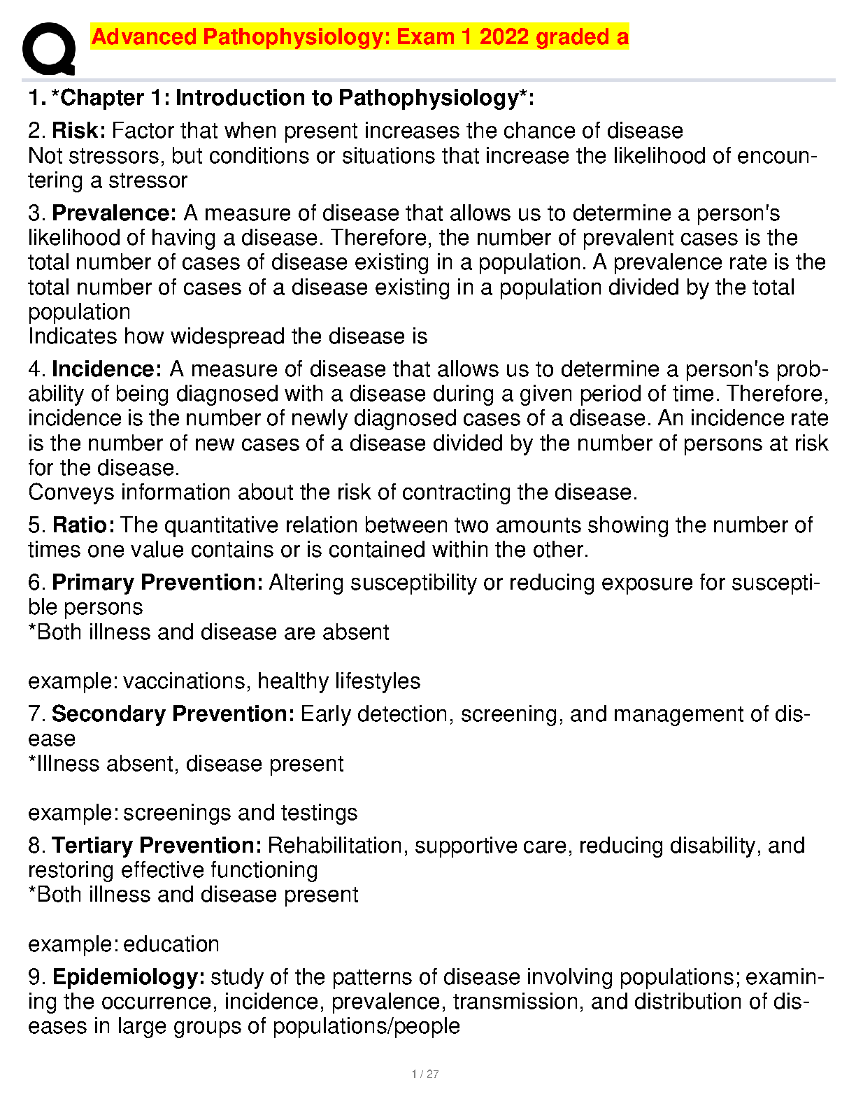 Advanced Pathophysiology: Exam 1 2022/2023 Graded A+