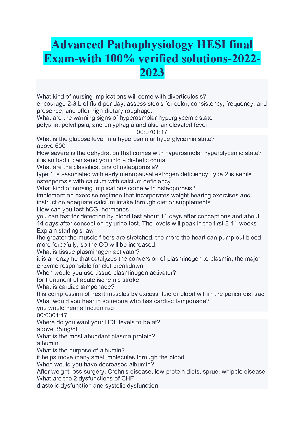Advanced Pathophysiology HESI final Exam with 100% verified solutions 2022/2023. DOWNLOAD on www.hackedexams.com INSTANTLY.