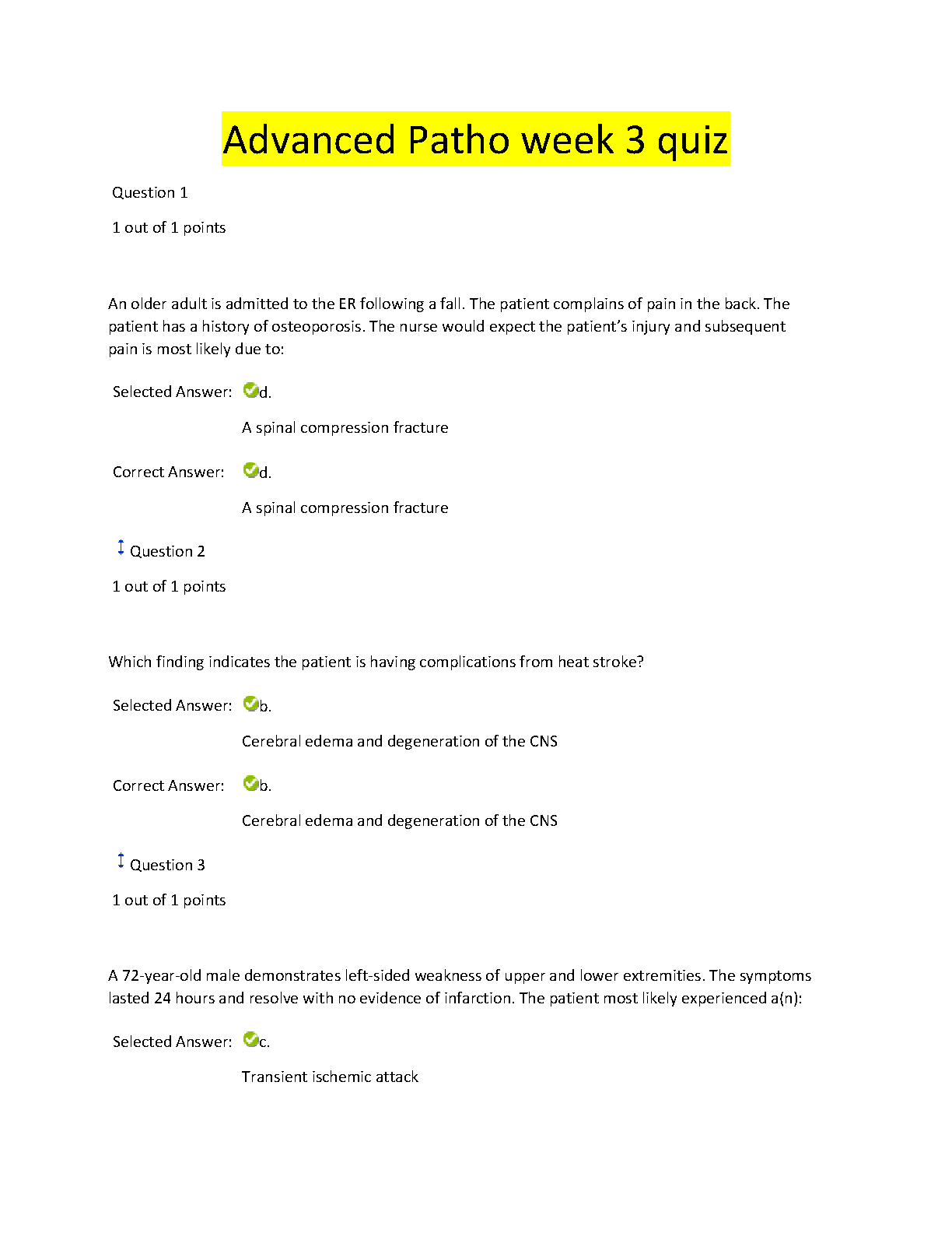 Advanced Patho week 3 quiz WITH 100% CORRECT ANSWERS