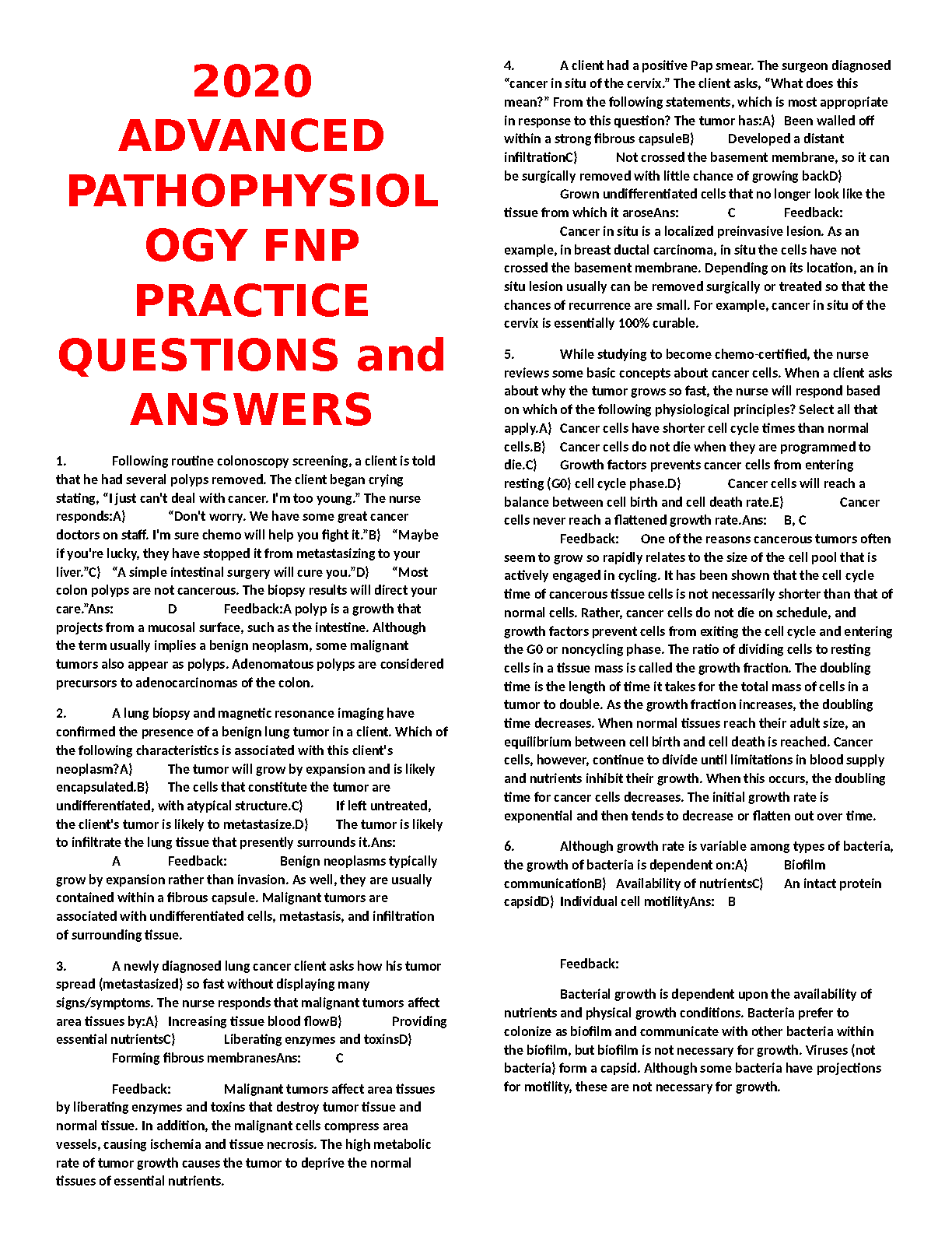 2020 ADVANCED PATHOPHYSIOLOGY FNP PRACTICE QUESTIONS and ANSWERS LATEST SOLUTION!!