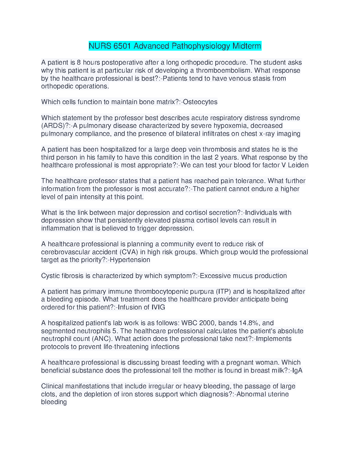 NURS 6501 Advanced Pathophysiology Midterm RATED A+. DOWNLOAD on www.hackedexams.com INSTANTLY.