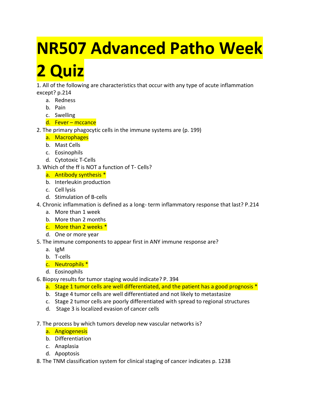 NR507 Advanced Patho Week 2 Quiz WITH 100% CORRECT ANSWERS 2023