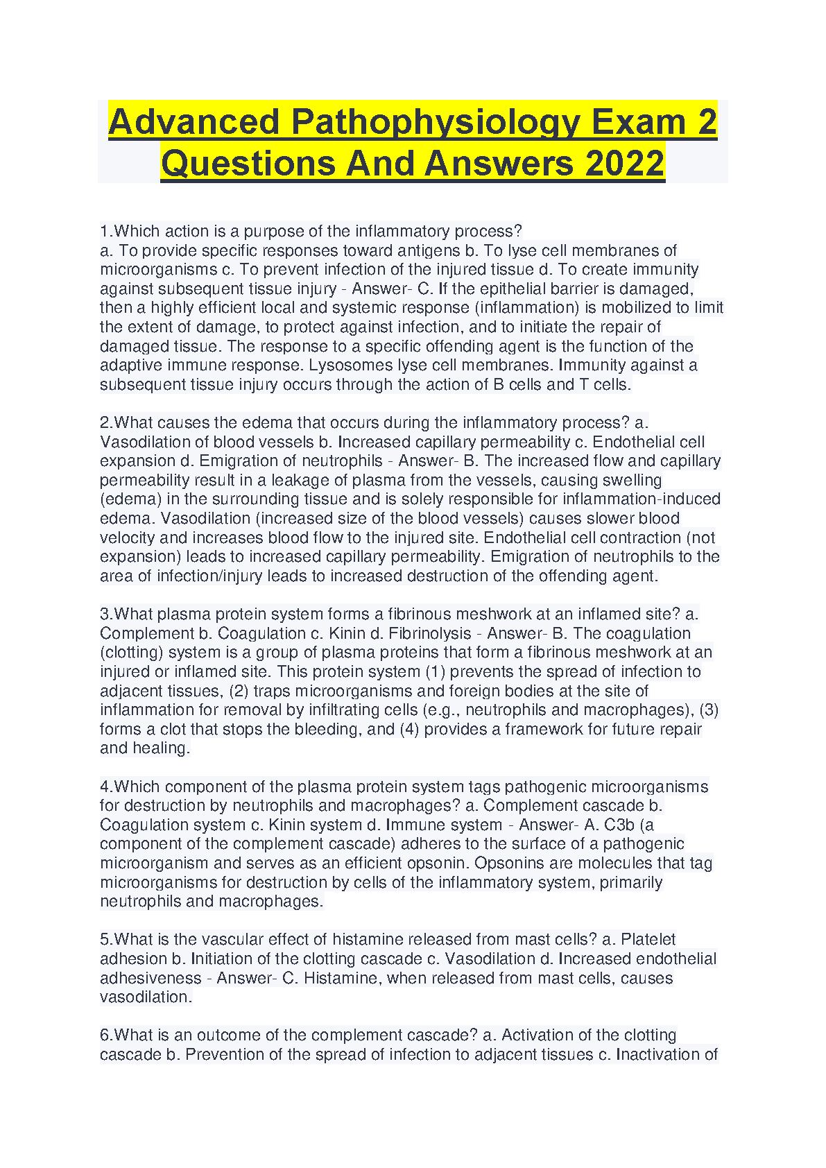 Advanced Pathophysiology Exam 2 Questions And Answers 2022/2023