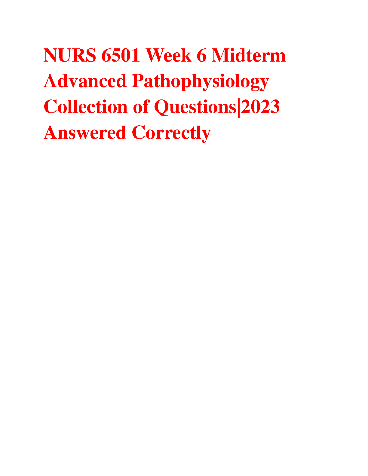 NURS 6501 Week 6 Midterm Advanced Pathophysiology Collection of Questions 2023 Answered Correctly. DOWNLOAD on www.hackedexams.com INSTANTLY.