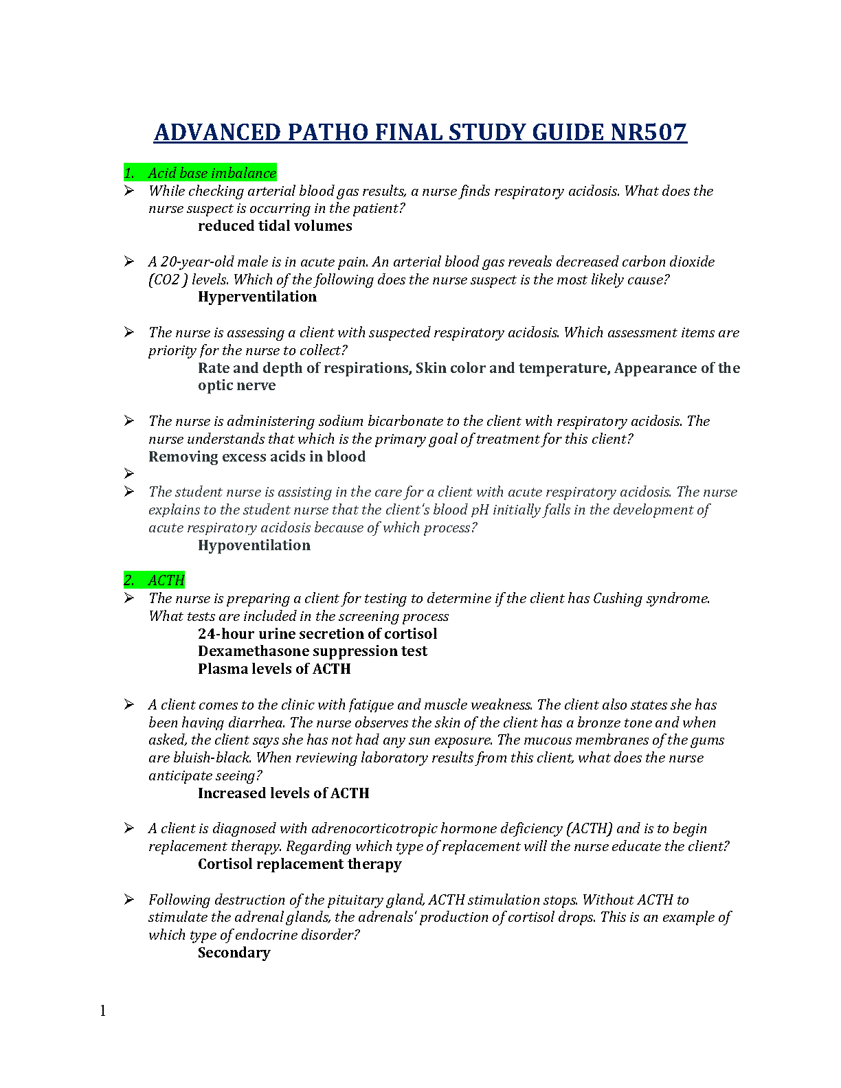 ADVANCED PATHO FINAL STUDY GUIDE NR507 COMPLETE SOLUTION 2023