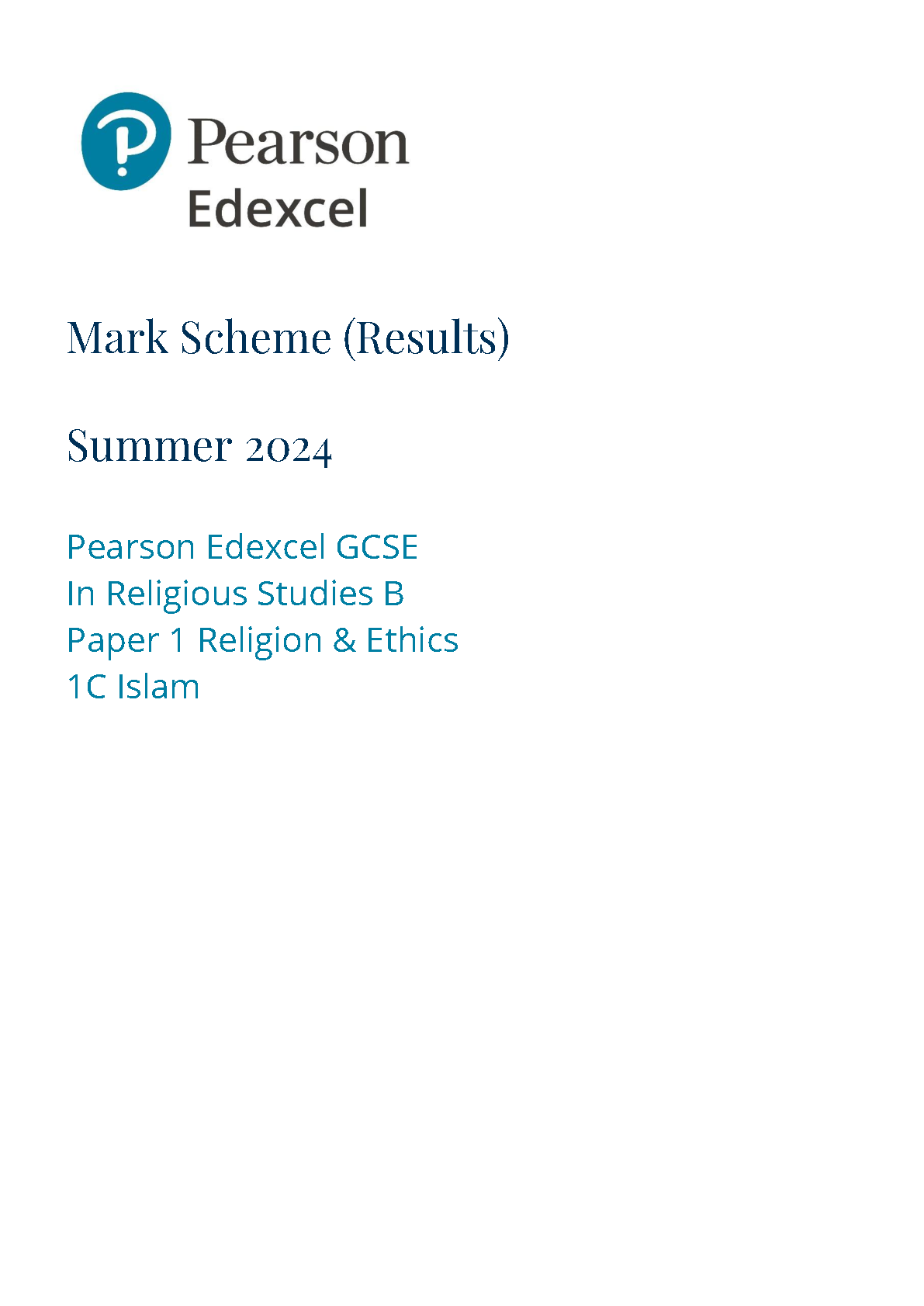 2024 PEARSON EDEXCEL GCSE RELIGIOUS STUDIES B MARK SCHEME PAPER 1 (1RB0/1C: Area of Study 1 – Religion and Ethics Option 1C – Islam).