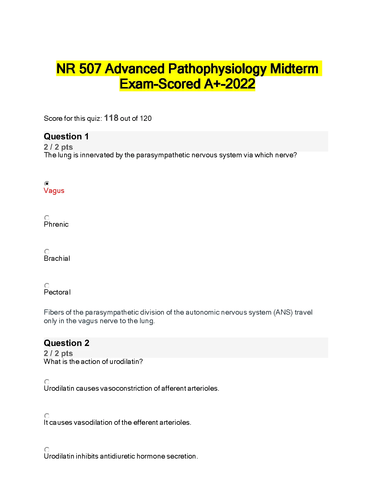NR 507 Advanced Pathophysiology Midterm Exam Scored A+ 2022/2023 . DOWNLOAD on www.hackedexams.com INSTANTLY.