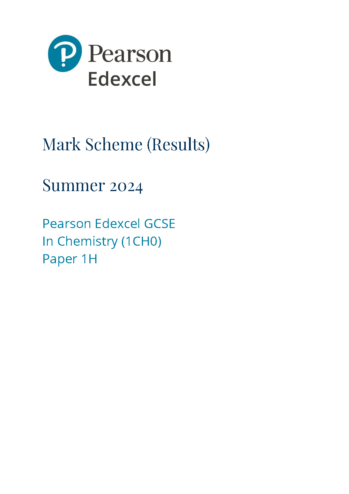 2024 PEARSON EDEXCEL GCSE CHEMISTRY MARK SCHEME PAPER 1 (1CH0/1H: Higher Tier). DOWNLOAD THE OFFICIAL AND VERIFIED ON www.hackedexams.com