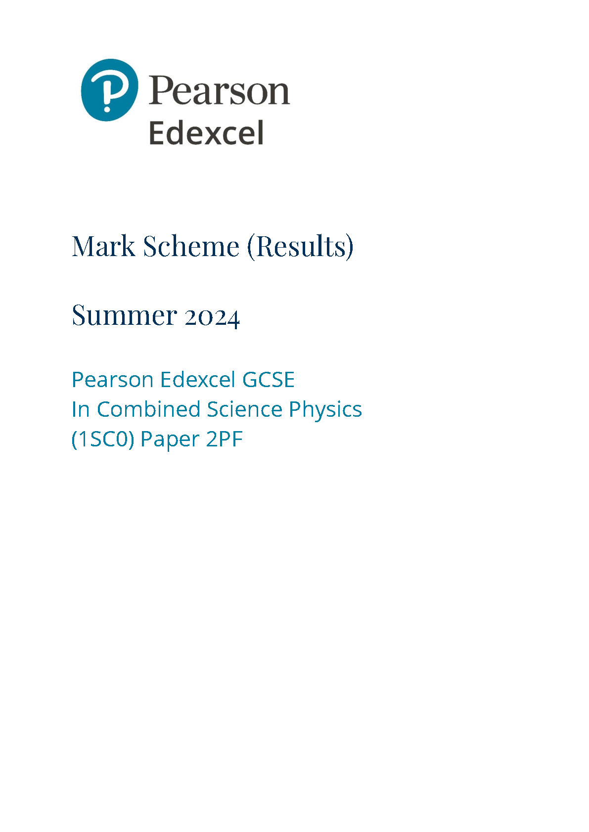2024 PEARSON EDEXCEL GCSE COMBINED SCIENCE MARK SCHEME PAPER 6 (1SC0/2PF: Foundation Tier).