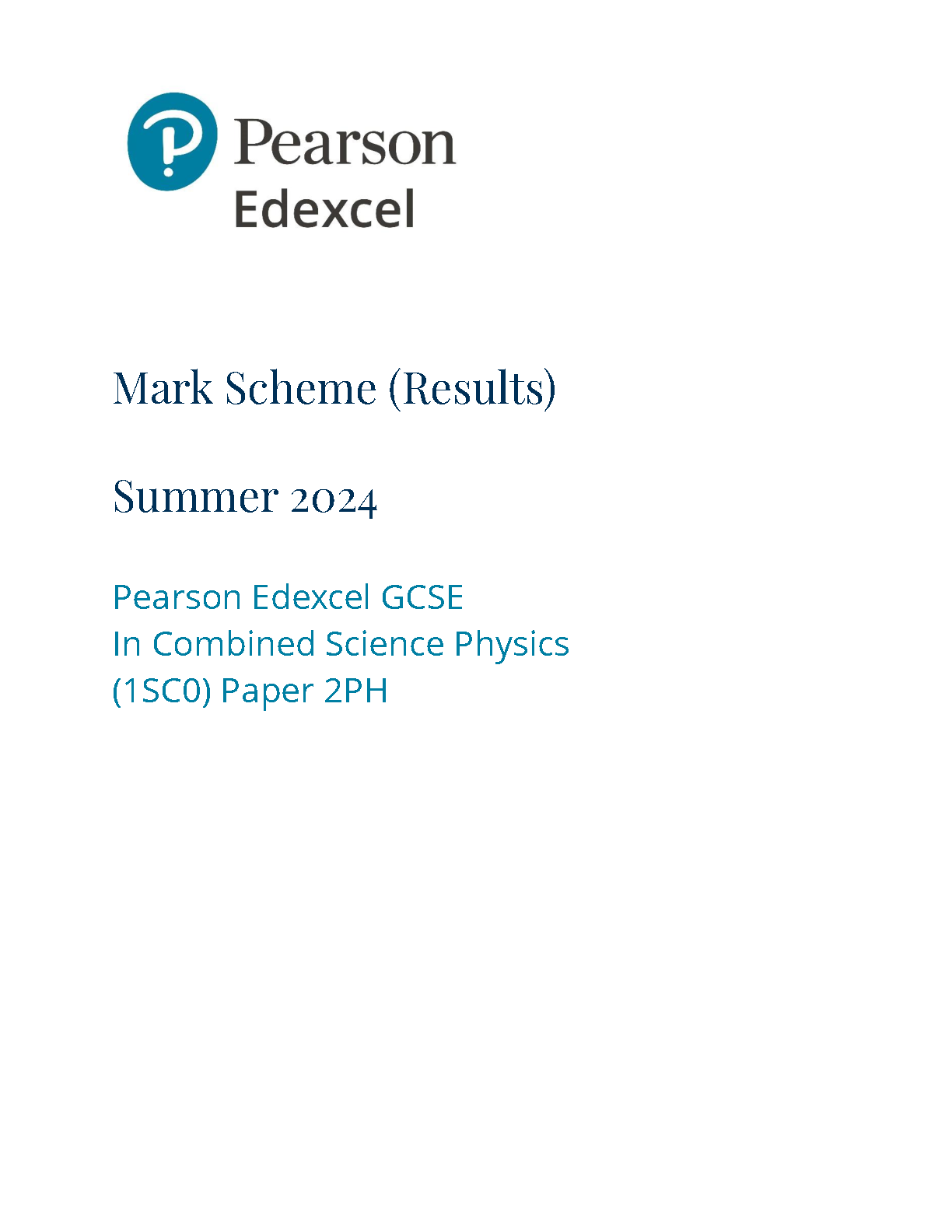 2024 PEARSON EDEXCEL GCSE COMBINED SCIENCE MARK SCHEME PAPER 6 (1SC0/2PH: Higher Tier).
